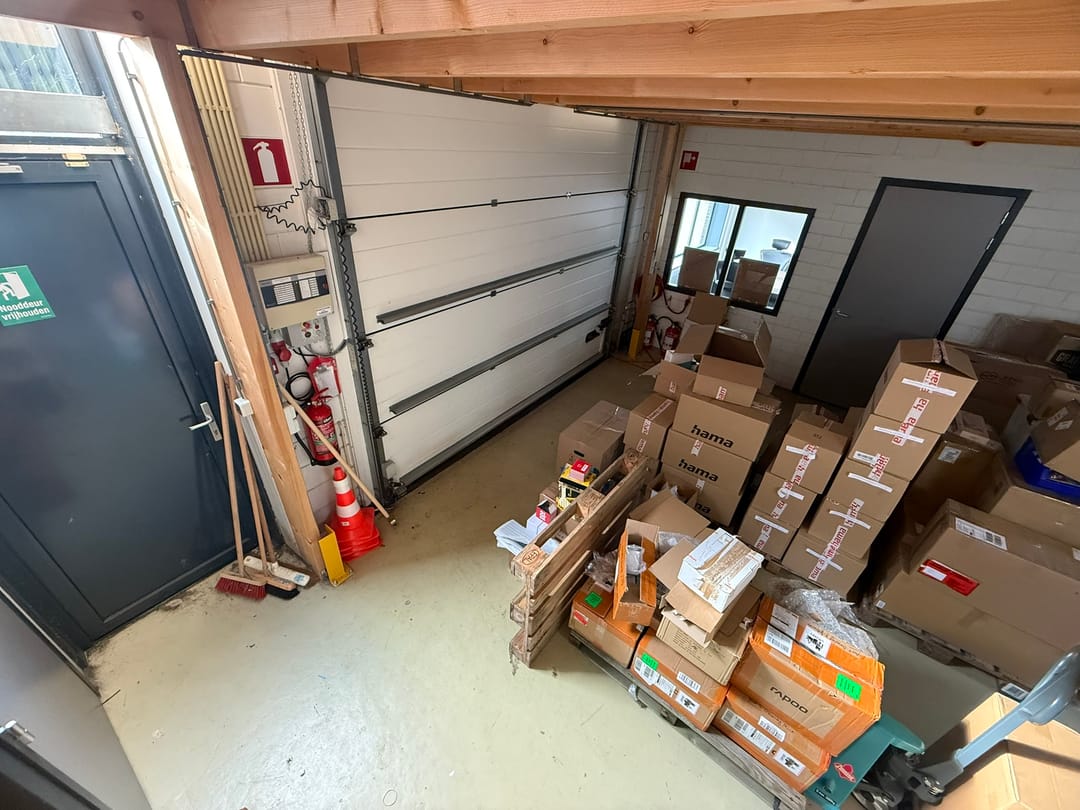 * bedrijfsruimte met trap naar entresolvloer;