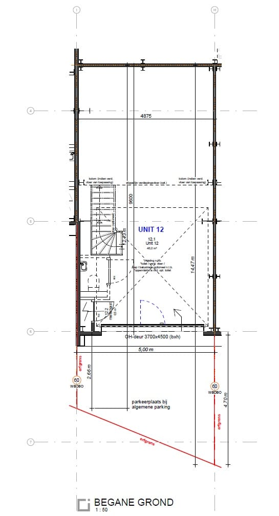 - elektrische overheaddeur (3,7 m¹ x 4,5 m¹) met loopdeur