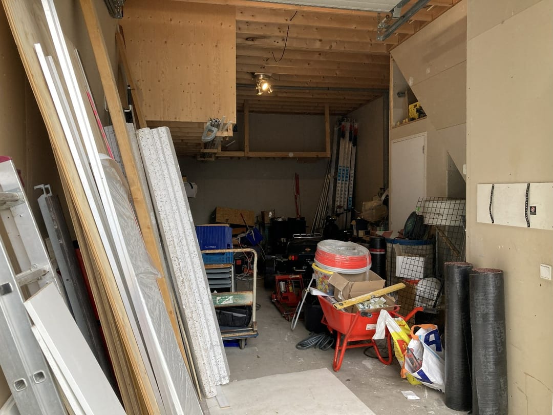 De overheaddeur is 2,99m hoog en 2,5m breed en wordt handbediend.
