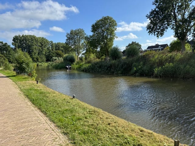 flinke balklaag, grote ramen aan de voorzijde met een schitterend uitzicht over de vaart en gemeentelijk groen.