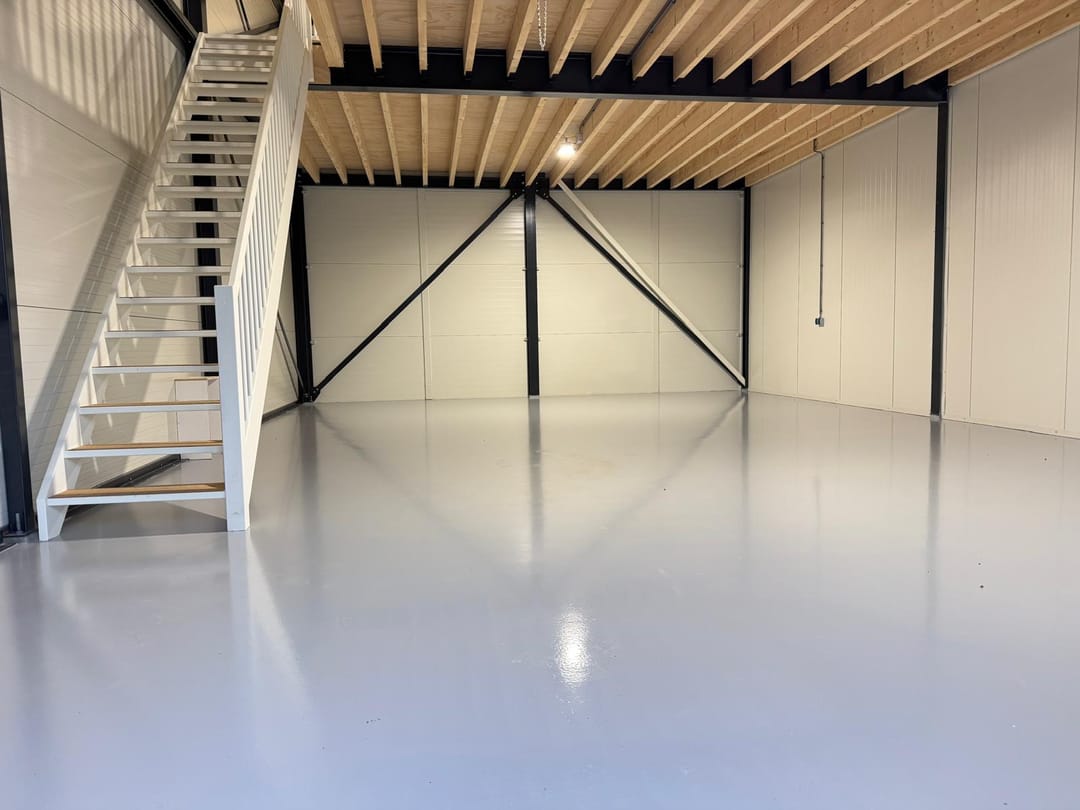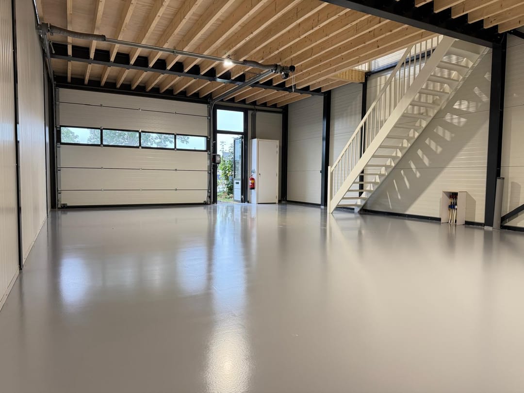 De unit is volledig gereed voor gebruik, en ook direct beschikbaar. De entree aan de voorzijde met een loopdeur en overheaddeur, fraai afgewerkte bedrijfsruimte met eigen meterkast, en houten trapopgang naar de verdieping voorzien van