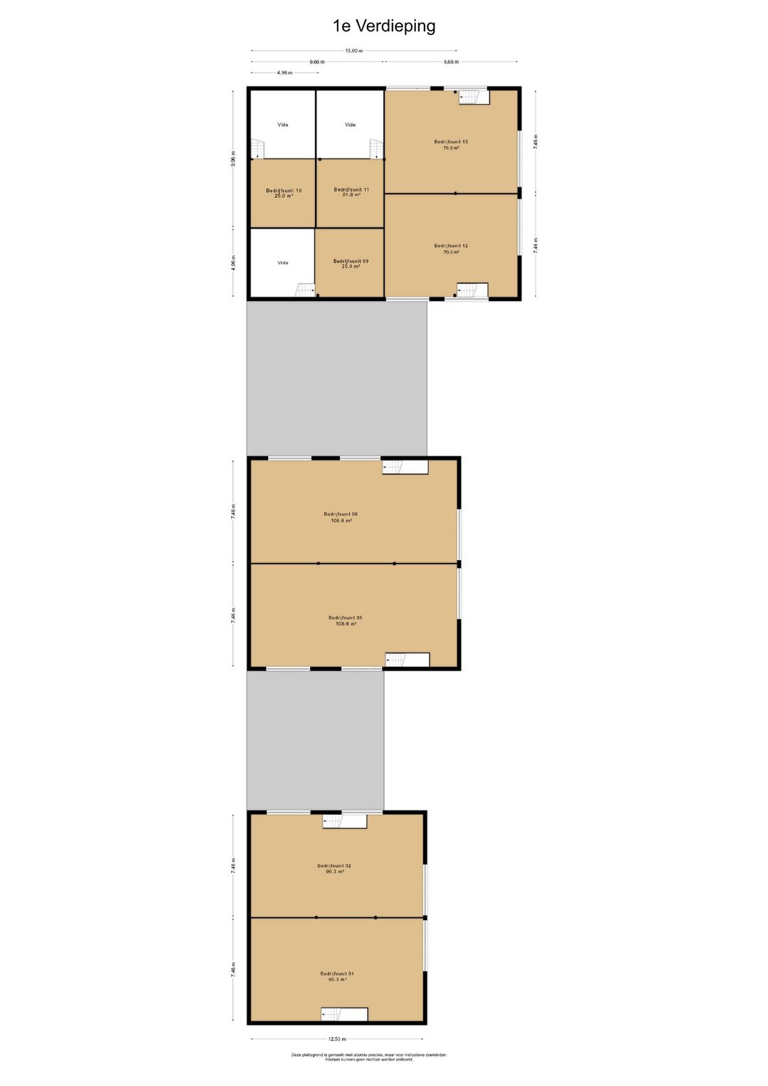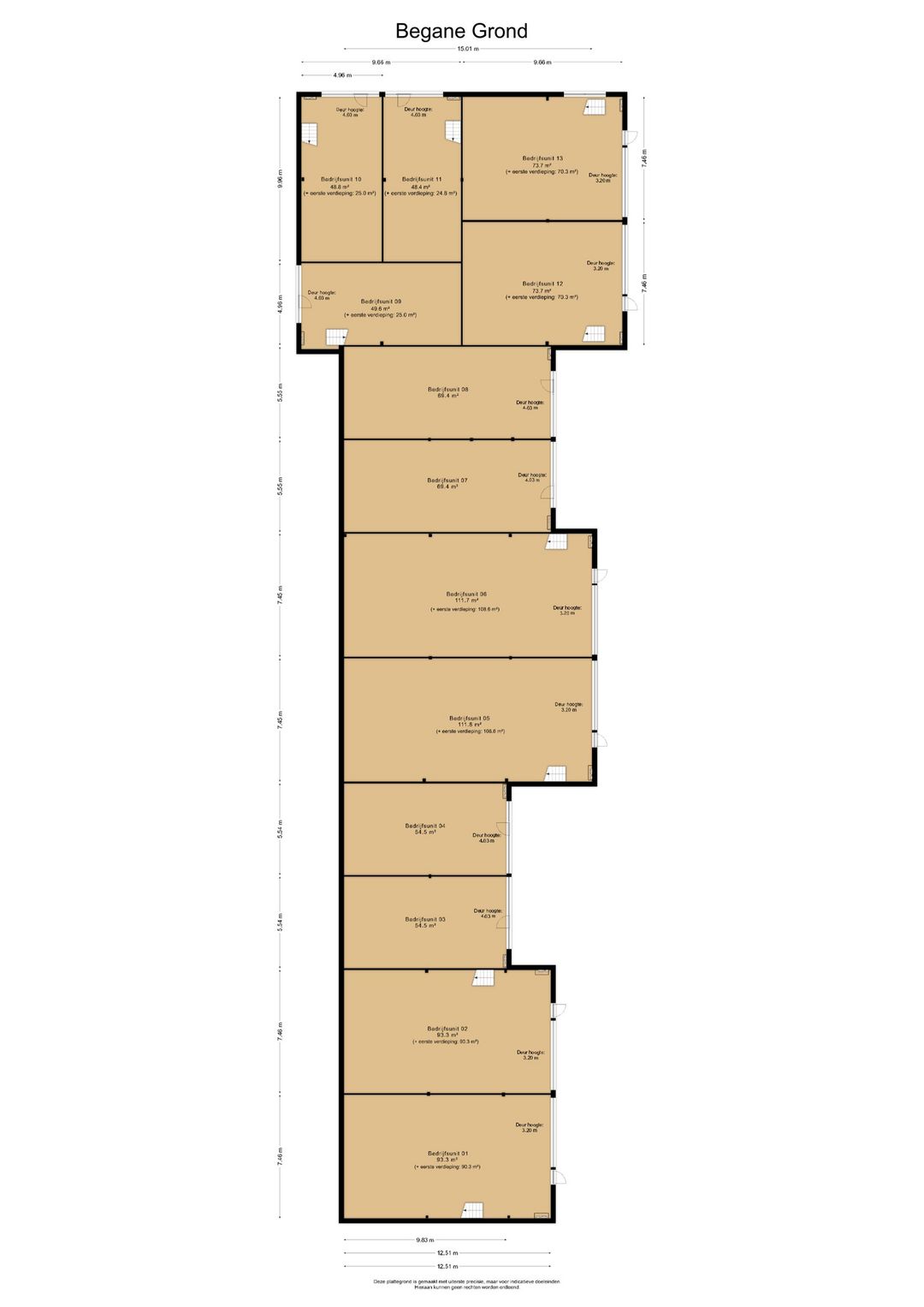 - Alle Units hebben extra ramen in de gevel, een overheaddeur (handbediend) en aparte loopdeur.