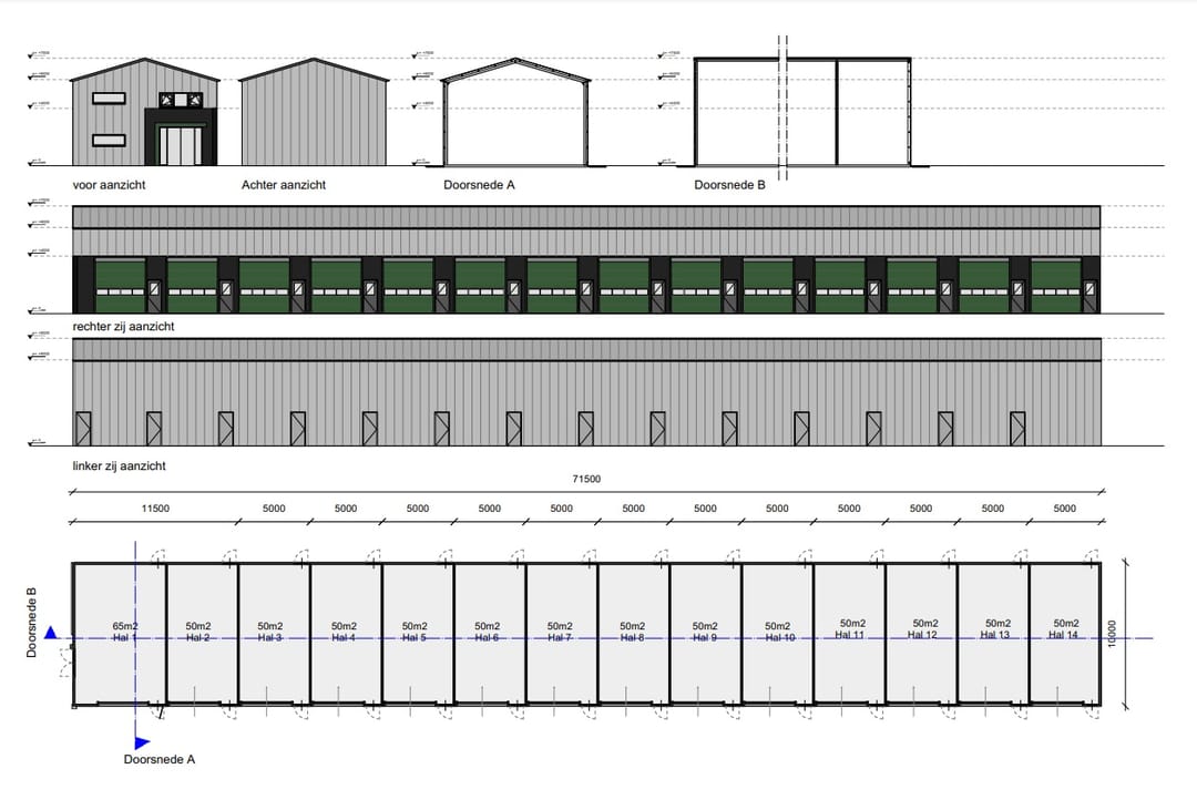 - Elektrische overheaddeur plus zijdeur: voor gemakkelijke toegang tot uw bedrijfsruimte.