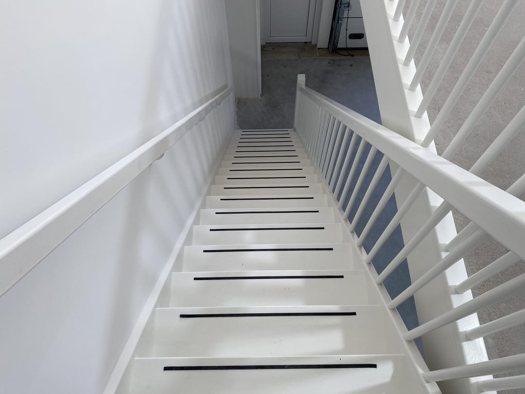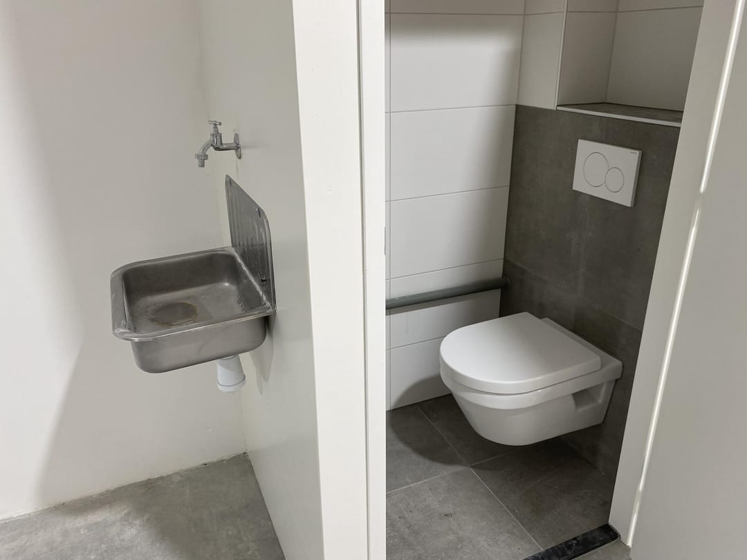 De verdiepingsvloer is uitgevoerd als een prefab betonnen elementenvloer welke op de verdieping is afgewerkt met een 50mm dikke cementvloer. Vrije hoogte eerste verdieping: 2,45 meter. De verdieping is voorzien van een water toevoer- en afvoer.