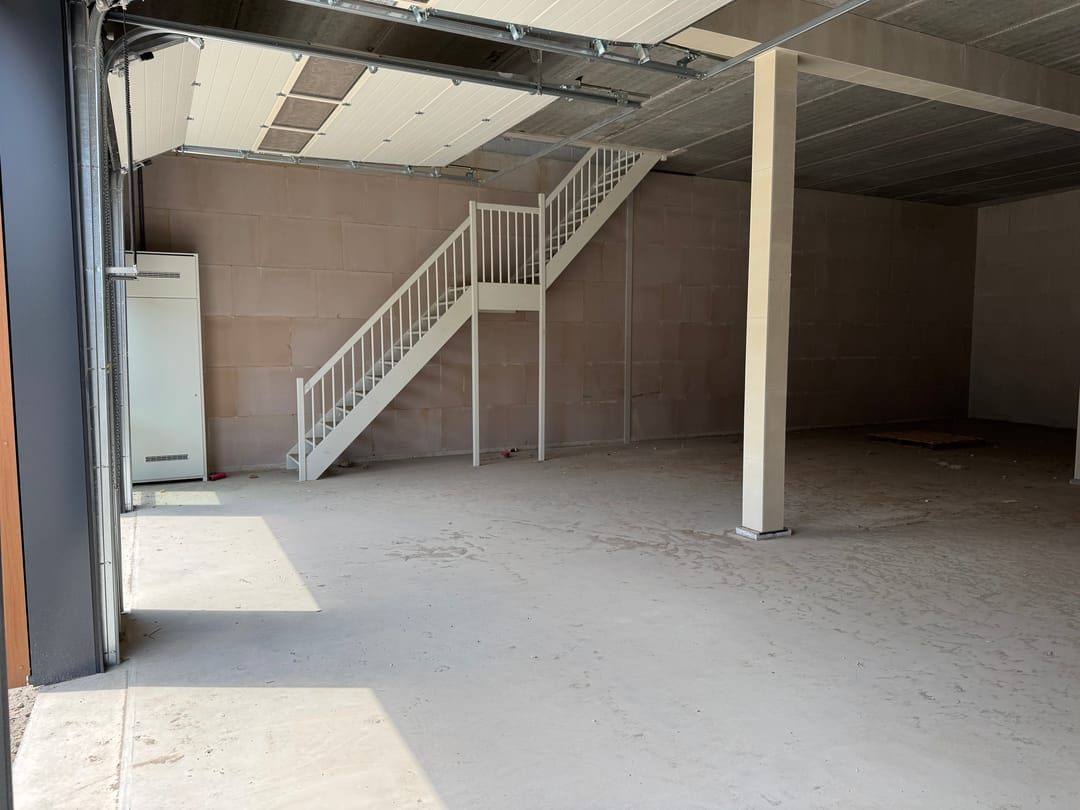 De toegang van het pand is op de begane grond via de twee overheaddeuren of separate toegangsdeur. Het betreft een open bedrijfsruimte met toilet onder de trap met een oppervlakte van ca. 161 m².