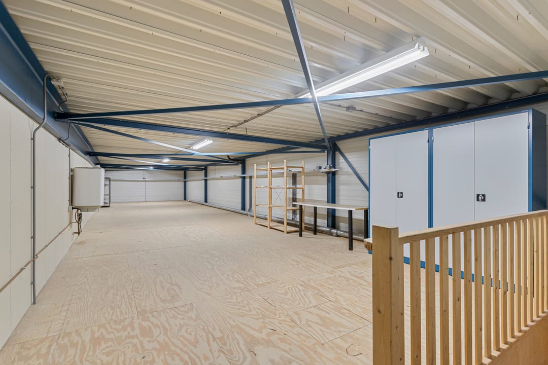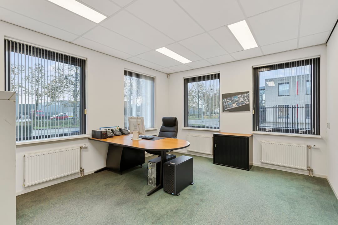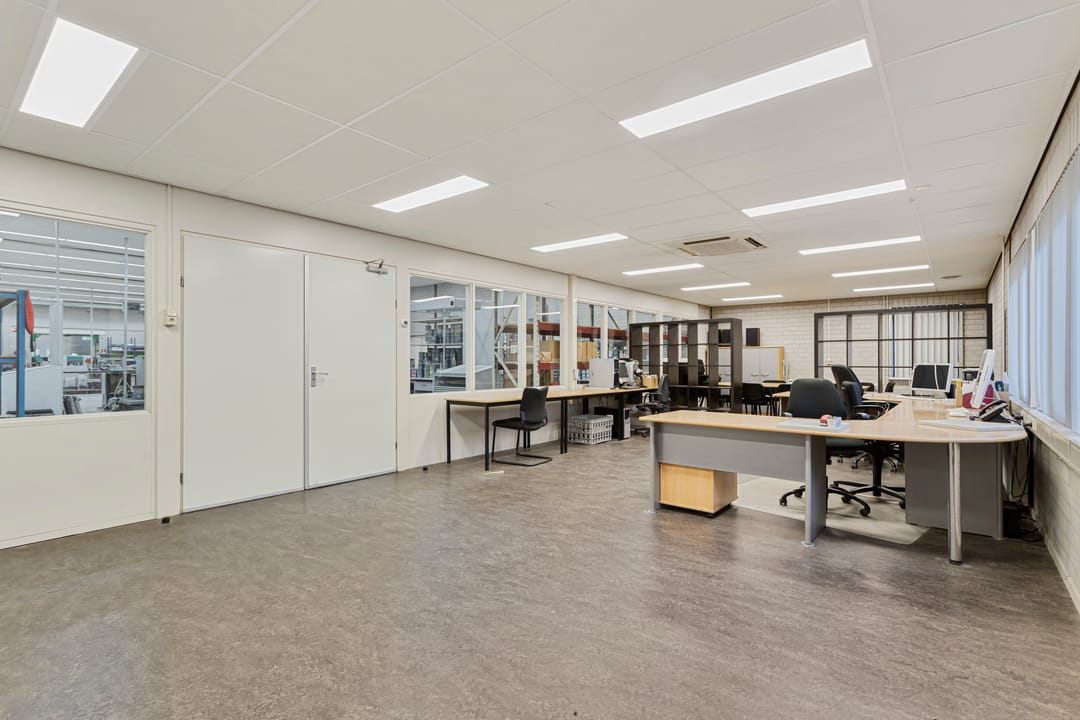 Het betreft een vrijstaand bedrijfsgebouw met kantoorruimte op de begane grond en een bedrijfsruimte met een overheaddeur. De bedrijfsruimte heeft een vrije hoogte van 4,8 m¹ en is voorzien van verwarming en systeemplafond. In de bedrijfsruimte is een entresol aanwezig.
