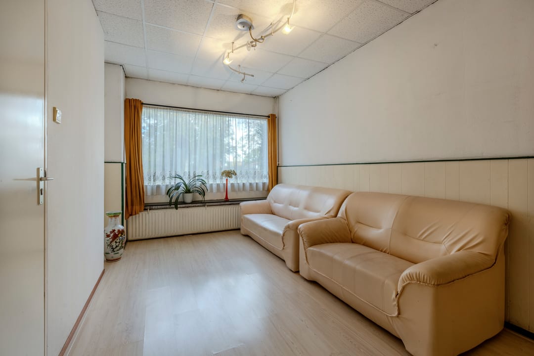 Royale en multifunctionele bedrijfs-/woonruimte bestaande uit diverse vertrekken die zich uitstekend lenen voor bijvoorbeeld dienstverlening, maatschappelijke voorzieningen, horeca of extra woonruimte en voorzien van meterkast, keuken, douche, toilet, toegang tot de riante zijtuin en garagebox en trapopgang naar de eerste verdieping.