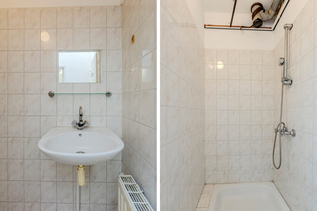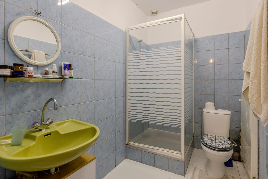 Tweede badkamer voorzien van douchecabine, wastafel en toilet.