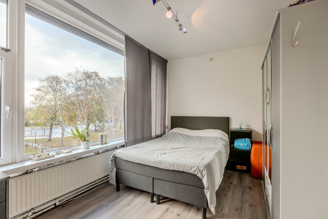 Slaapkamer (ca. 2.73m x 3.40m) voorzien van vloerstoffering, centrale verwarming en bergkasten.