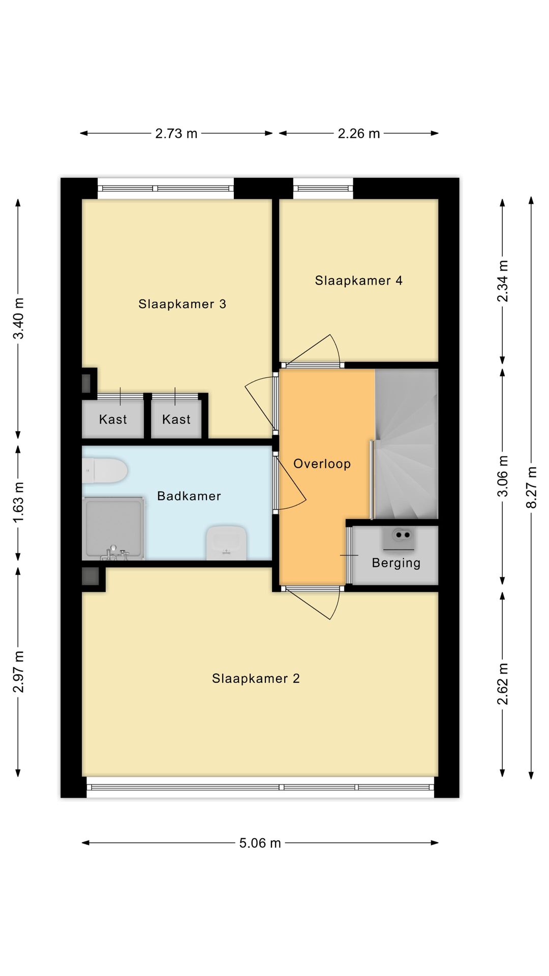 Vanuit de overloop is er toegang tot 3 slaapkamers, een badkamer en een bergruimte.