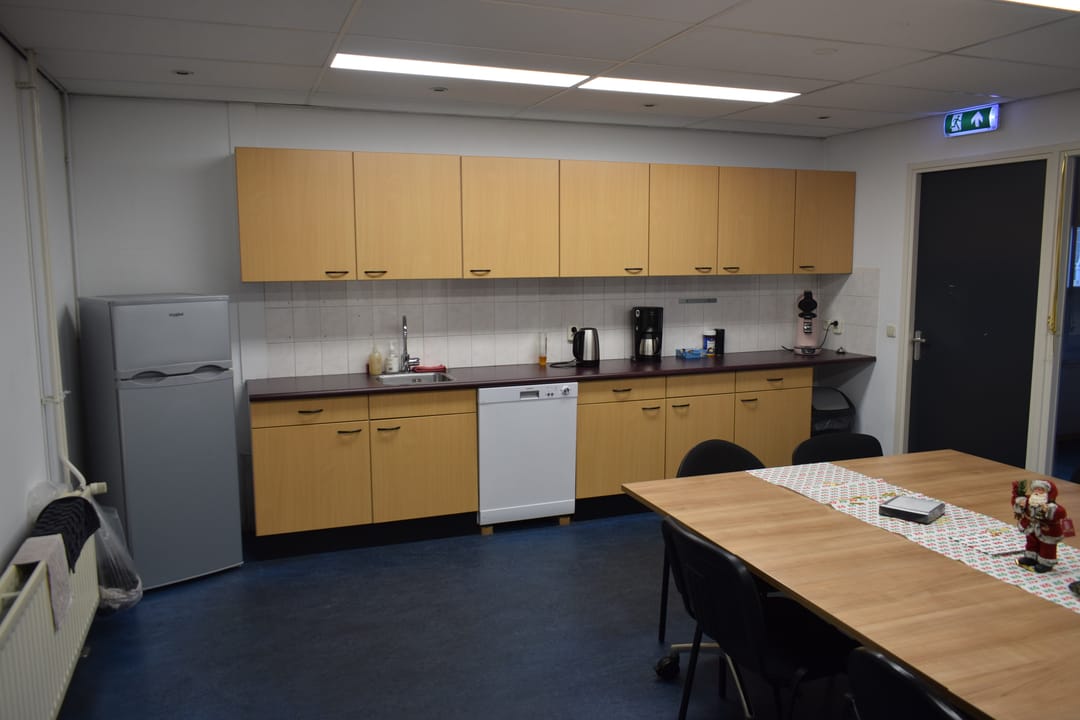 Kantoor: Entree met toegang tot de centrale ruimte van waaruit 5 kantoren bereikbaar zijn. Aansluitend secundaire ruimte met pantry en 2 toiletgroepen (dames- en heren). Aan de achterzijde de kantine met keuken , bergruimte en serverruimte.