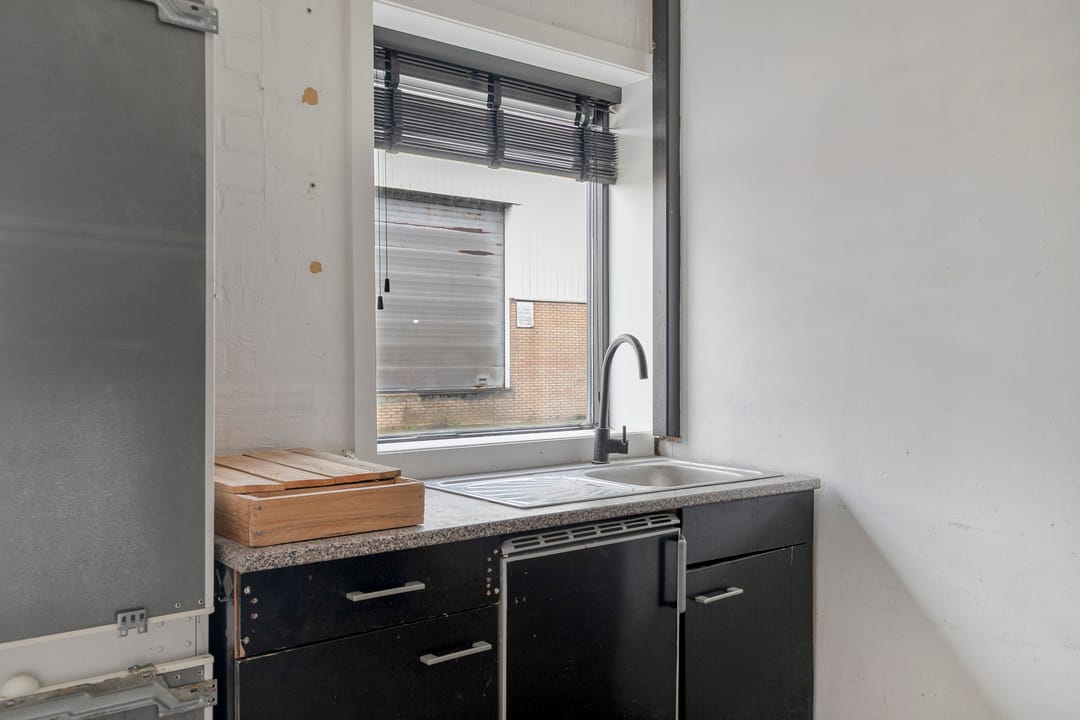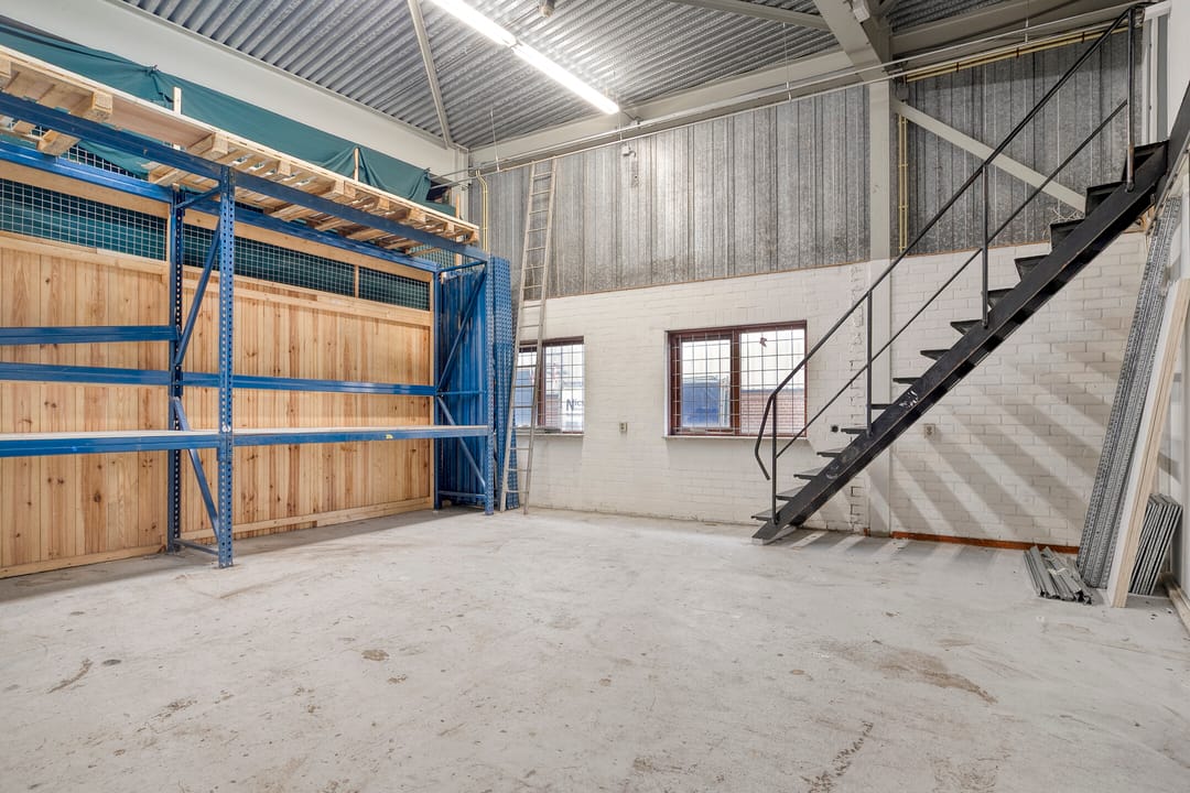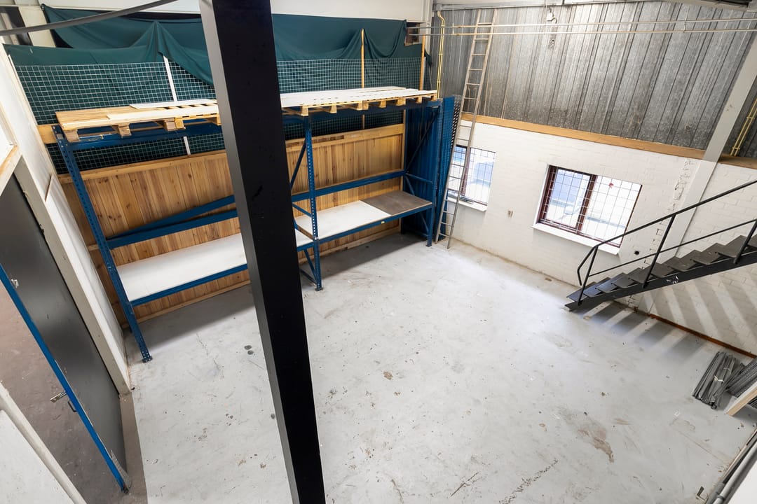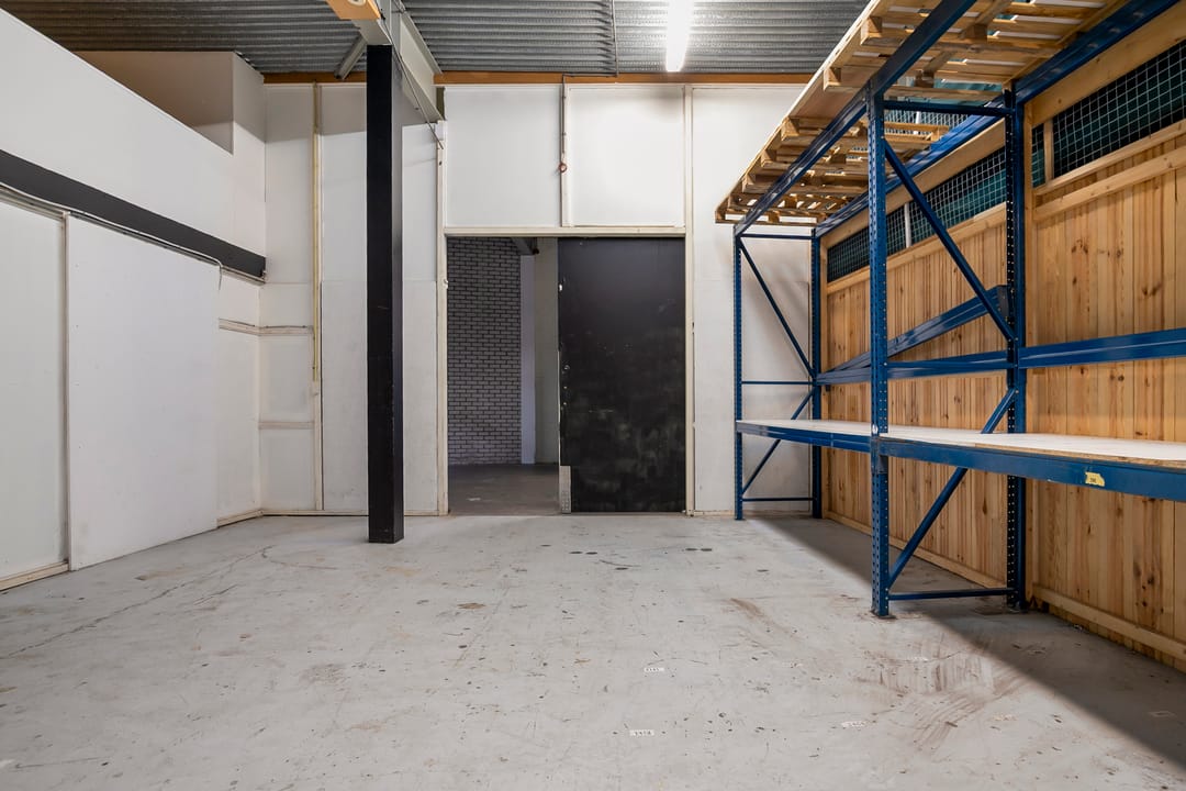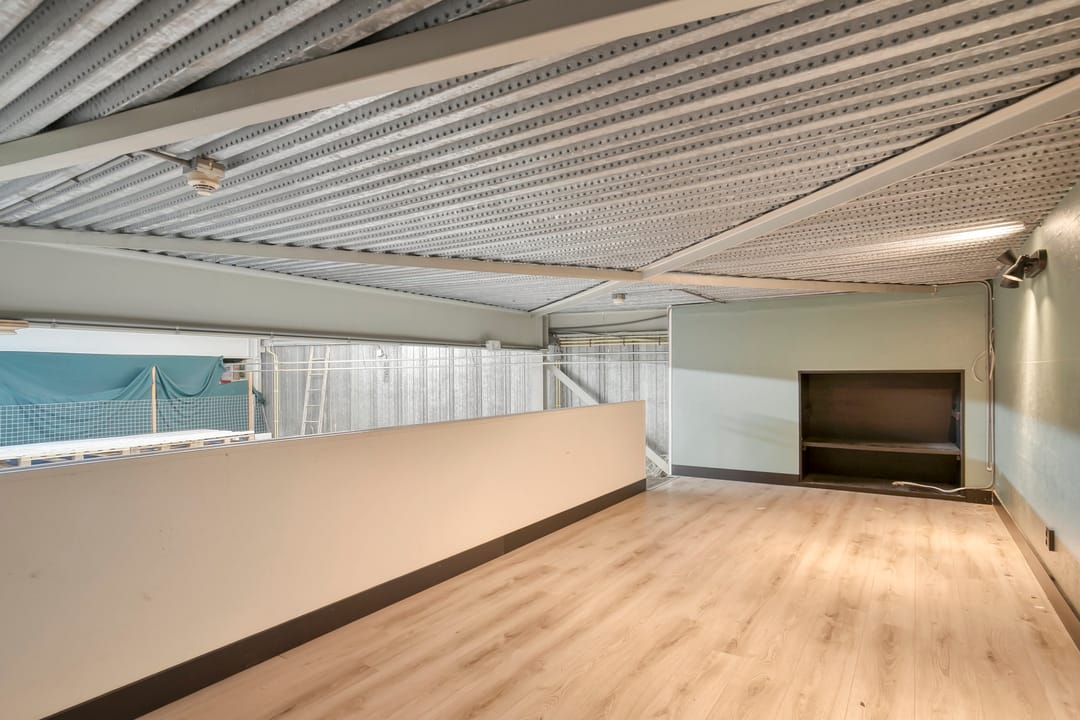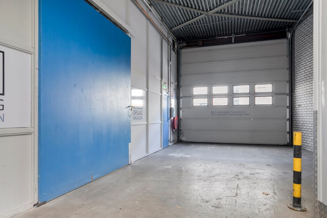 Aan de voorzijde van het pand bevindt zich een nette kantoorruimte met pantry. Vanuit hier heeft u direct toegang tot de achtergelegen bedrijfsruimte. Deze ruimte is ruim en hoog opgezet en daardoor geschikt voor uiteenlopende bedrijfsactiviteiten. Via een vaste trap bereikt u de praktische vliering, die extra opslag- of werkruimte biedt. Achter de bedrijfshal bevinden zich de gezamenlijk te gebruiken toiletten, welke onderdeel zijn van het verzamelgebouw en door medehuurders worden gedeeld.