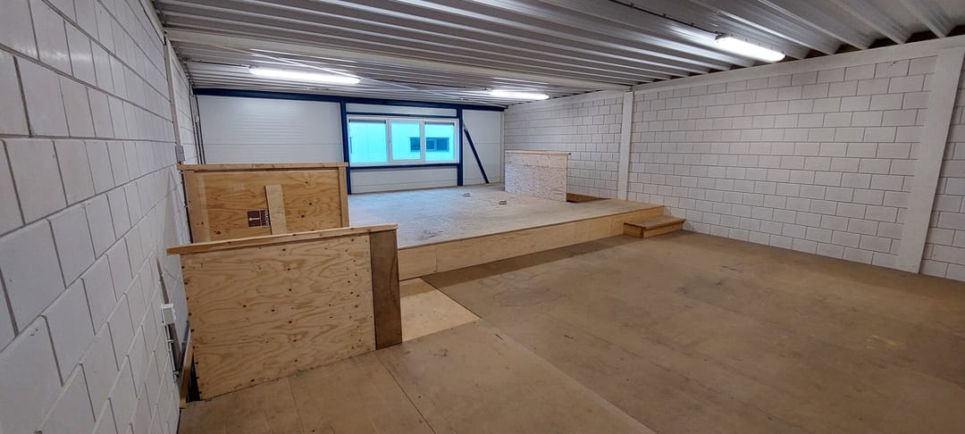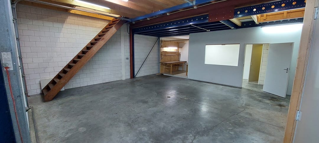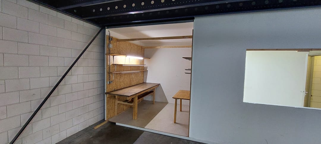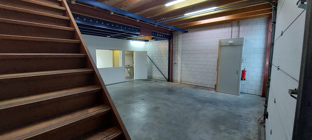 De ruimte is geschikt voor lichte bedrijfsactiviteiten, opslag of werkplaatsfunctie, maar niet toegestaan voor autogerelateerde bedrijven.