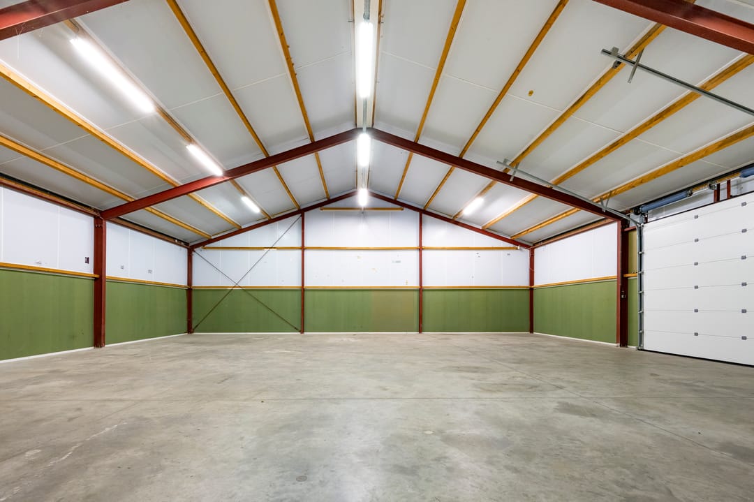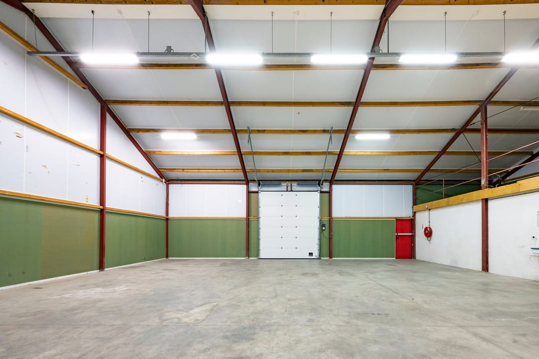 Aan de voorzijde gelegen entree met toilet, meterkast, cv-ruimte, kantoor (50 m²) en doorloop naar het magazijn (25 m²) en werkplaats (200 m²). Het buitenterrein is goed bereikbaar, bestraat, omheind en afsluitbaar.