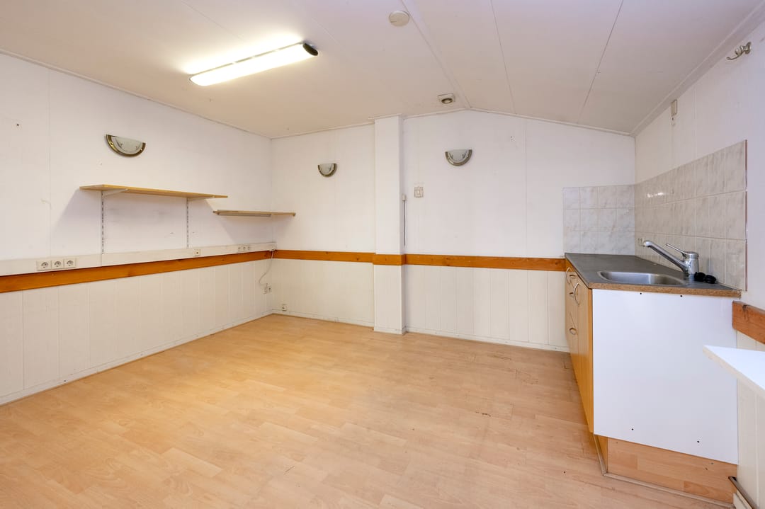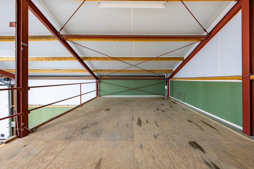 Boven het kantoor en het magazijn is een 2e etage (75 m²) aanwezig, thans onderverdeeld in kantine en magazijn.