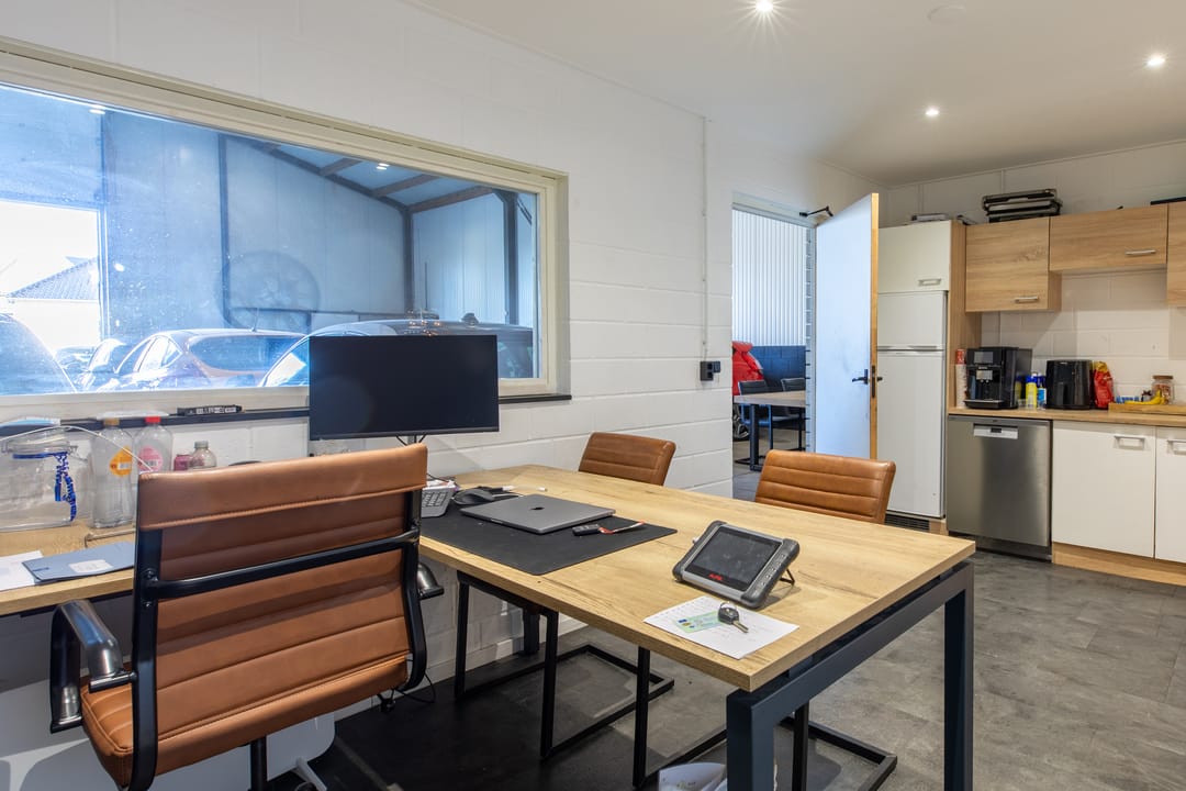 De achtergelegen bedrijfshal met een oppervlakte van circa 306 m² biedt ruime mogelijkheden voor opslag, werkplaats of andere bedrijfsactiviteiten.