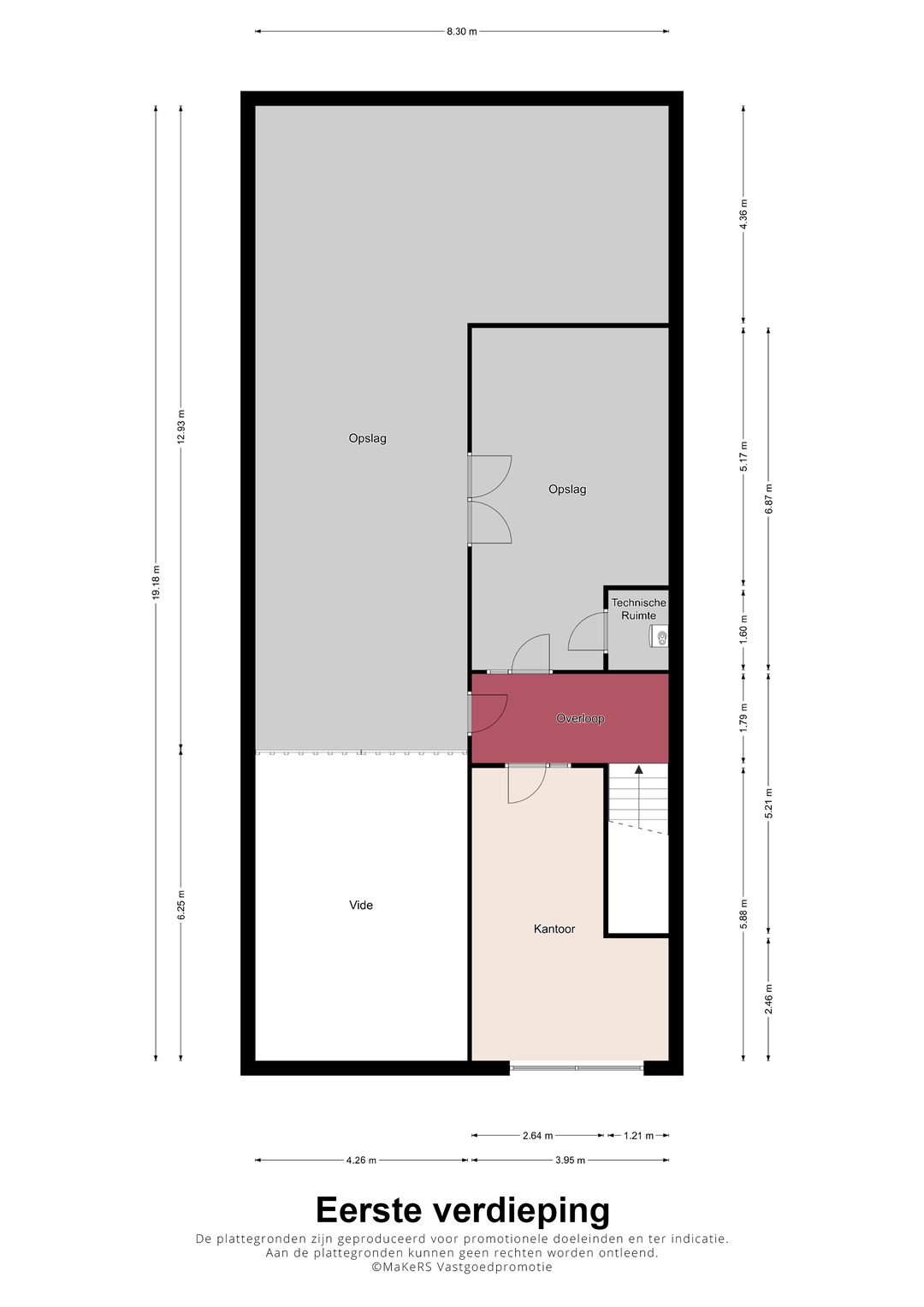 De eerste verdieping biedt praktische extra ruimte, waarvan het grootste deel geschikt is als opslag en een gedeelte is ingericht als 2e kantoorruimte met vloerafwerking, systeemplafond, verwarming en daglichttoetreding middels grote ramen.
