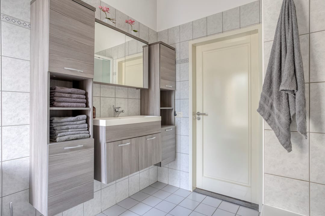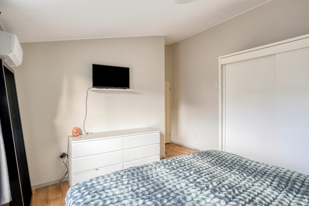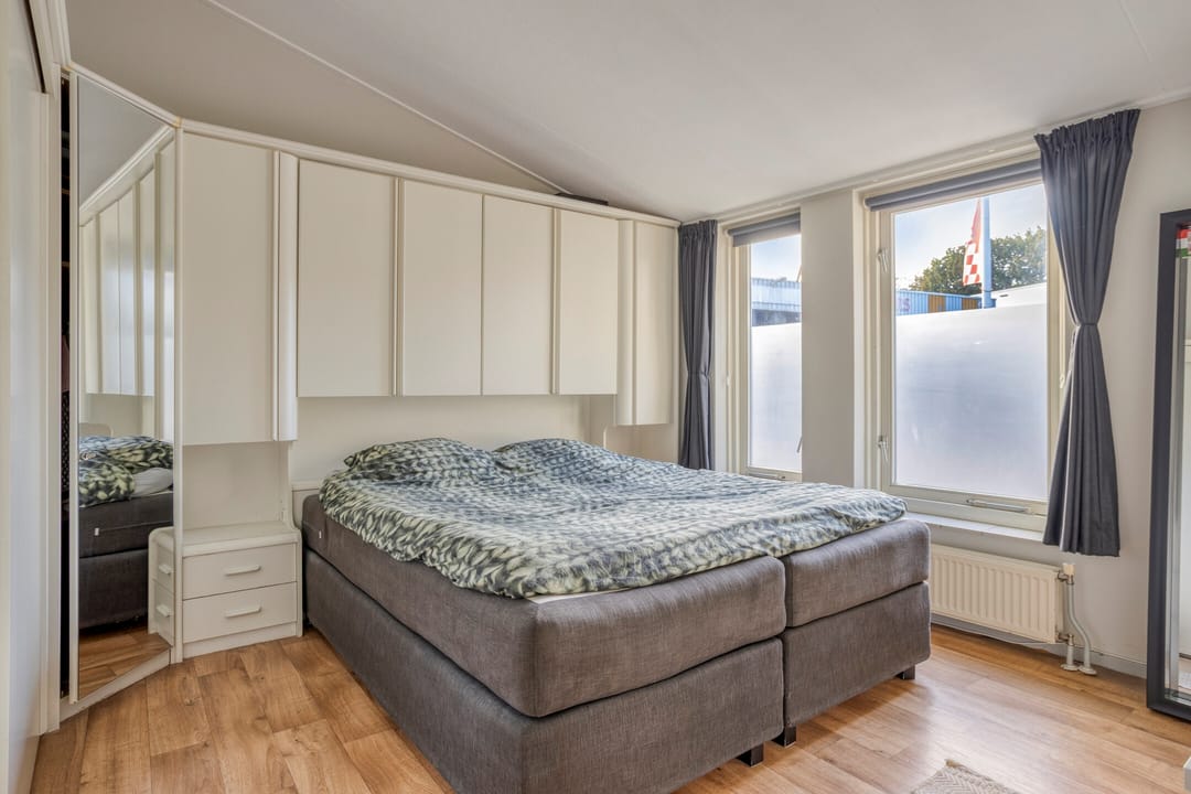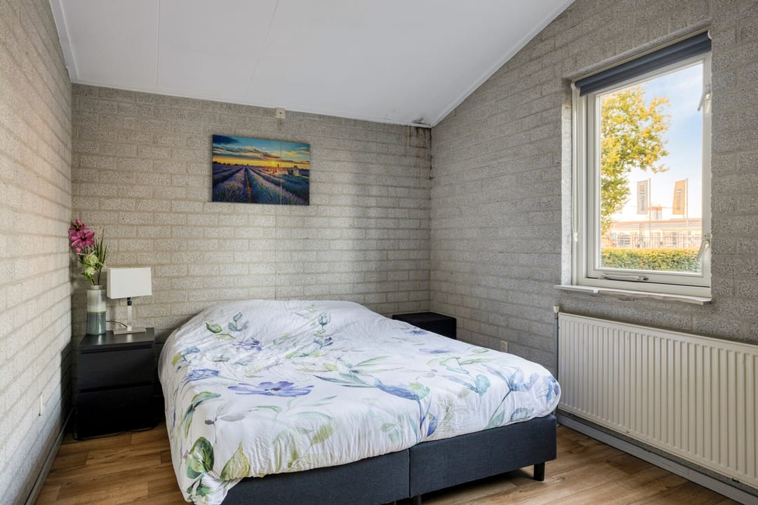 Vanuit de ruime hal toegang tot een 3-tal slaapkamers en de badkamer. De slaapkamers zijn voorzien van een vinylvloer en hardhouten raamkozijnen met dubbele beglazing. De hoofdslaapkamer heeft een wandairco. De grotendeels licht betegelde badkamer met een gipsplaten plafond is voorzien van een toilet, een douchecabine, een ligbad en een badmeubel met vaste wastafel. Natuurlijke ventilatie middels een hardhouten raamkozijn met dubbel gematteerd glas.