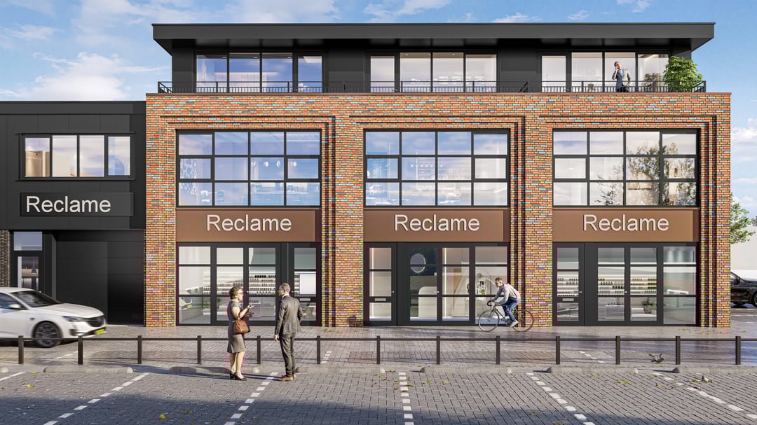 De architectuur kenmerkt zich door een moderne en robuuste uitstraling met een combinatie van metselwerk, aluminium kozijnen en hoogwaardige gevelafwerking. Grote raampartijen zorgen voor veel daglicht en geven de units een professionele en luxe uitstraling.