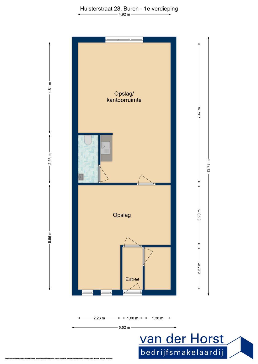 De door Van der Horst Makelaardij en verhuurder verstrekte informatie dient uitsluitend gezien te worden als een uitnodiging tot nader overleg. Hoewel deze informatie met grootst mogelijke zorg is samengesteld, wordt noch door de makelaar, noch door diens opdrachtgever ingestaan c.q. aansprakelijkheid aanvaard voor de juistheid dan wel volledigheid van de verstrekte, nog te verstrekken of vermelde gegevens. Aan afwijkingen in de tekst, maten en tekeningen kunnen dan ook geen rechten worden ontleend.