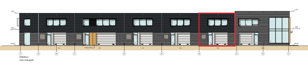 • Gevel gemetseld met bruin gemêleerde steen tot bovenzijde overheaddeur;