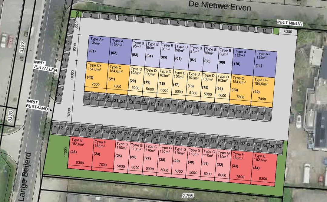 - Type F: 3 parkeerplaatsen.