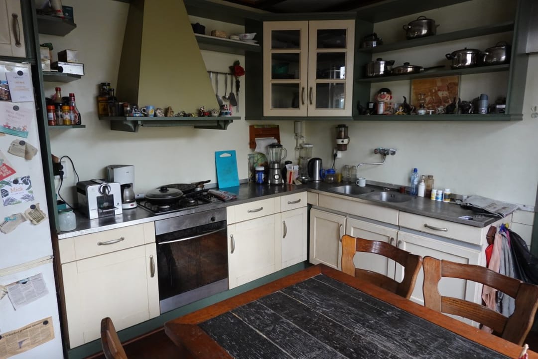 Vanuit de woonkamer komen we in de gezellige leefkeuken. Hier is voldoende ruimte voor een eettafel. De keuken ademt een gezellige, authentieke sfeer. Via de praktische bijkeuken met aansluiting voor de wasmachine en droger, komen we in de badkamer. Deze is uitgerust met een ligbad, douche, wastafel, toilet en bidet. Naast de badkamer is er ook nog een separaat toilet. Op de begane grond vinden we nog 3 extra ruimtes die op dit moment in gebruik zijn als kantoorruimte, maar bijvoorbeeld ook goed als speel- of slaapkamer dienst kunnen doen. Dat maakt, samen met de badkamer op de begane grond, dat de woning levensloopbestendig is.