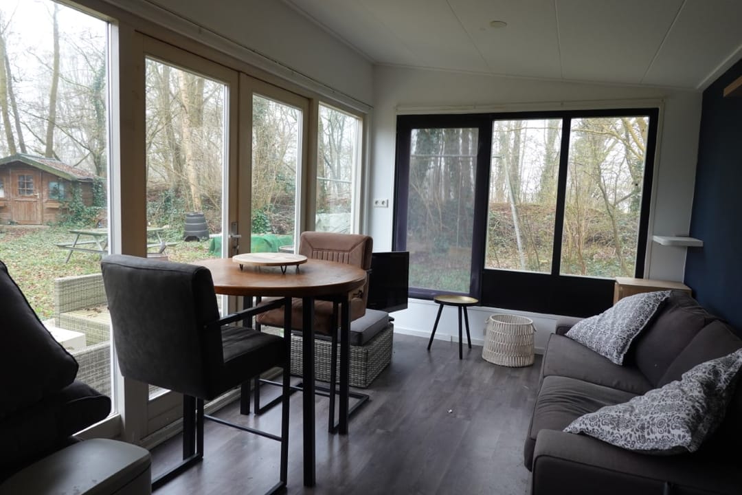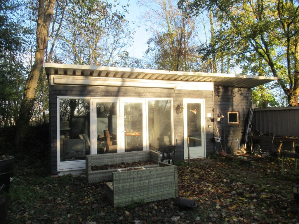 Het vrijstaande gastenverblijf vinden we achter op het perceel. Deze heeft een oppervlakte van ruim 40 m². Er bevinden zich een woonkamer met open keuken, een slaapkamer en een badkamer met douche, toilet, wastafel en aansluiting voor de wasmachine. Openslaande deuren bieden toegang tot een gezellig terras.