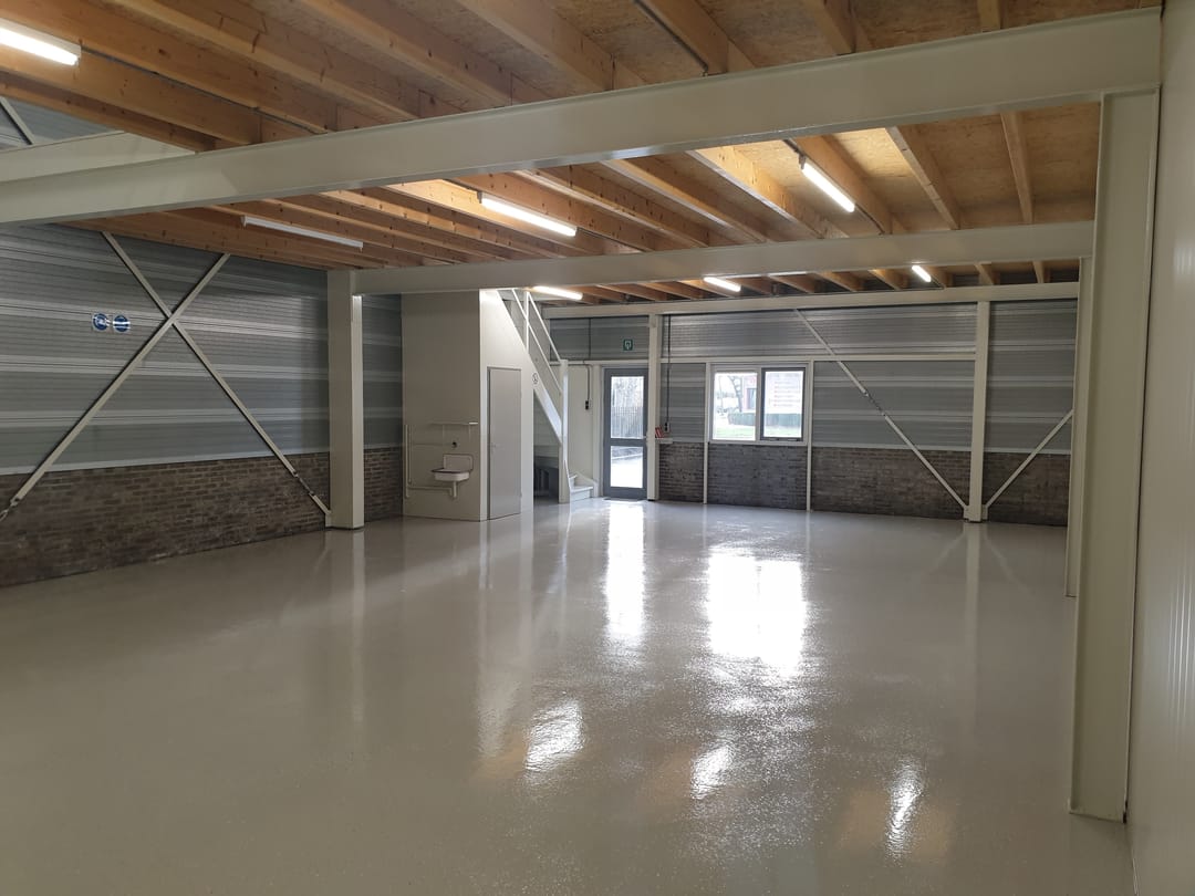 Het vloeroppervlakte bedraagt ca. 240 m2 in twee bouwlagen. De begane grond vloer (ca. 120 m2) heeft een zwaar onderheide vloeistofdichte betonvloer.