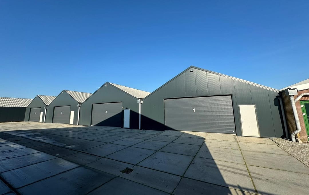 De eerste 4 units zijn per stuk te huur en hebben elk een eigen overheaddeur.