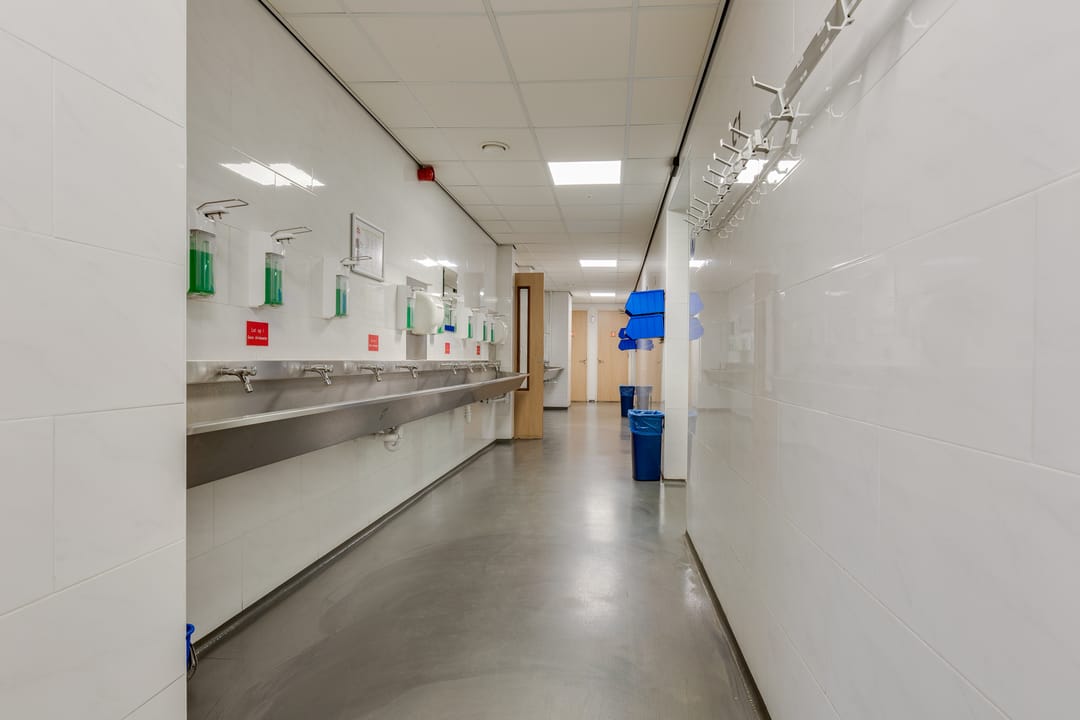 • Diverse was- en kleedruimtes met bijbehorende sanitaire voorzieningen en natte ruimtes en hygiëne sluizen;