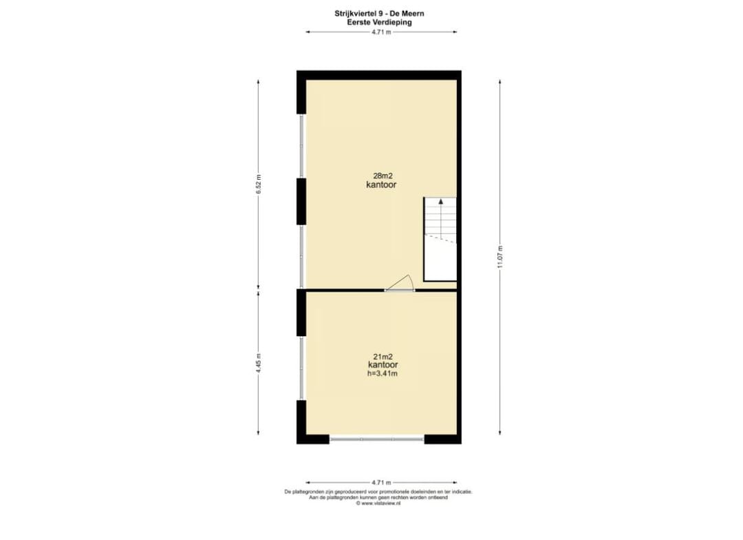 - Eerste verdieping (ca. 52 m² v.v.o.): representatieve kantoorruimte