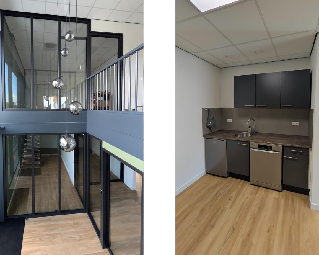 - per twee kantoren een gedeelde kantine met keuken, koelkast en vaatwasser