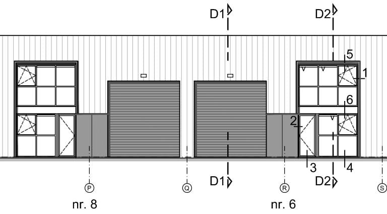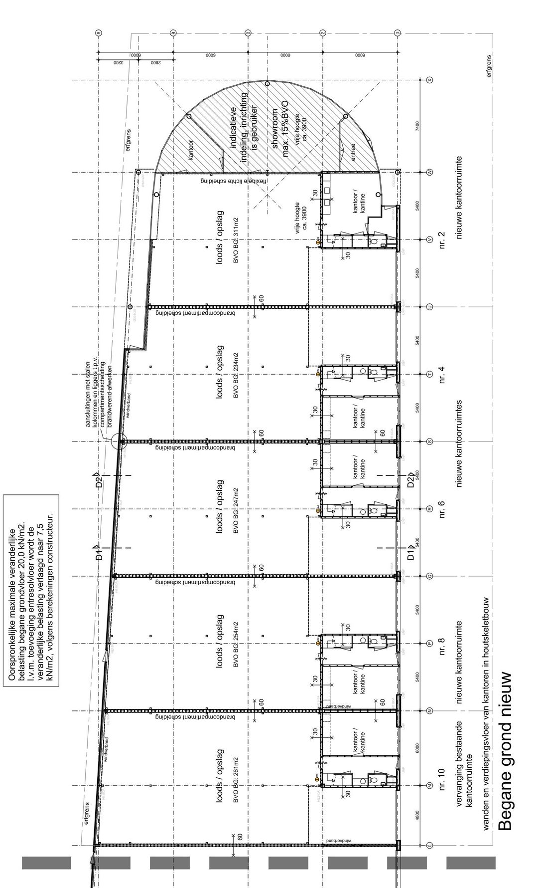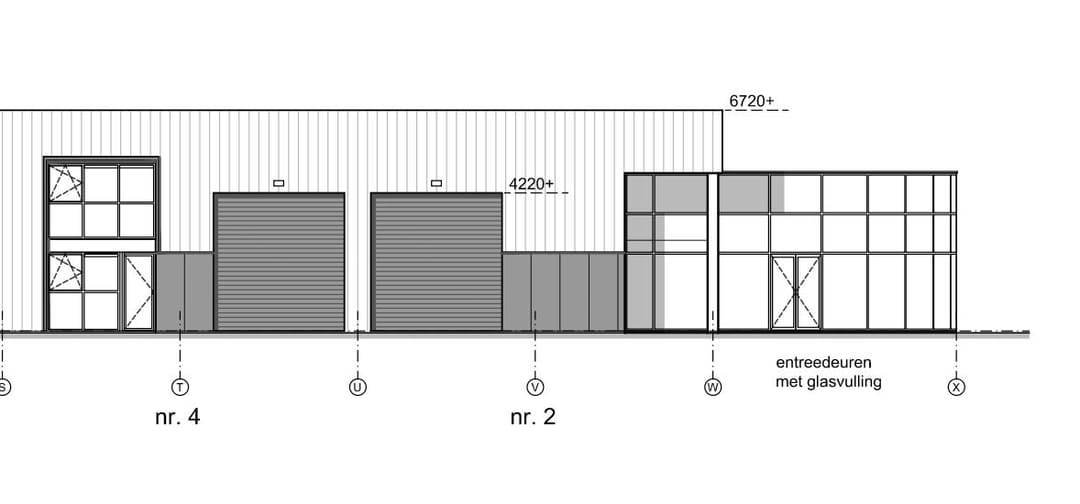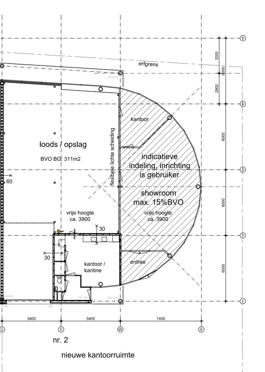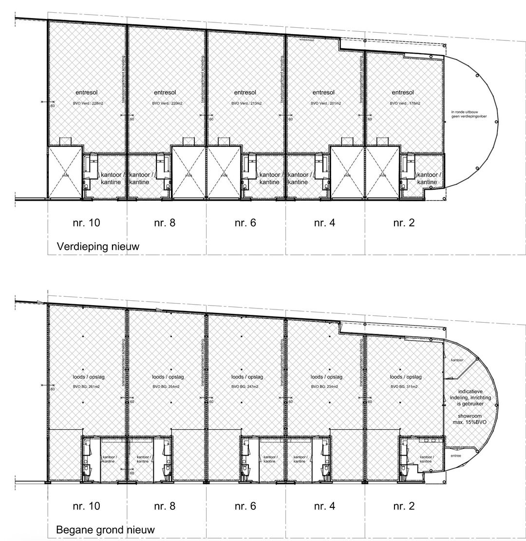 2 laags bedrijfsruimtes met elektrische overhead-deur. Eerst een hoogte van 6m en met een vide naar de 1e etage.