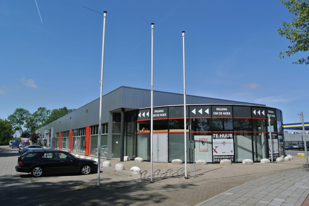 Nu te huur 5 (waarvan 1 reeds verhuurd) bedrijfsruimtes in aan/ombouw waarvan met 1 met een ronde showroom, gelegen aan de rand van Delft op industrieterrein Schieweg net voorbij de Makro met vrij uitzicht over natuurgebied.