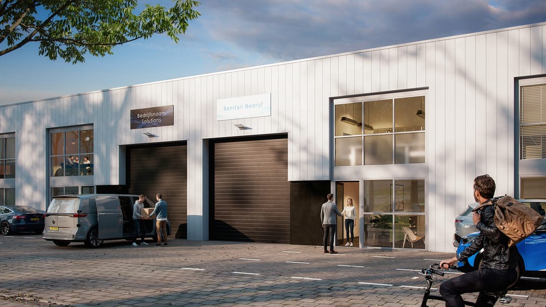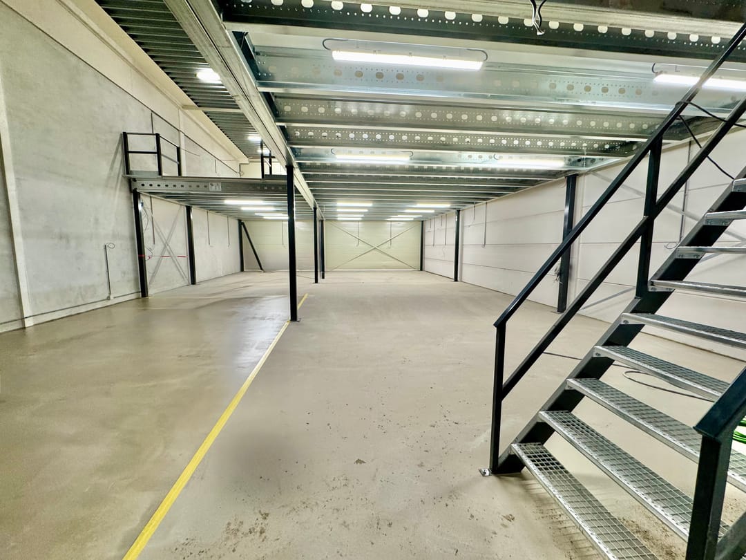 2 laags bedrijfsruimtes met elektrische overhead-deur (4.00 b x 4.25 h) Eerst een hoogte van 6,50 m en met een vide naar de 1e etage.