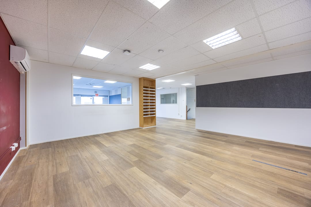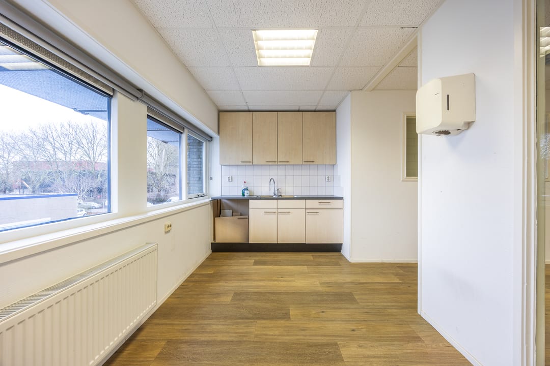De ruimte heeft een totale oppervlakte van circa 233 m² BVO en beschikt tevens over een beknopte pantry en een tweetal toiletten.