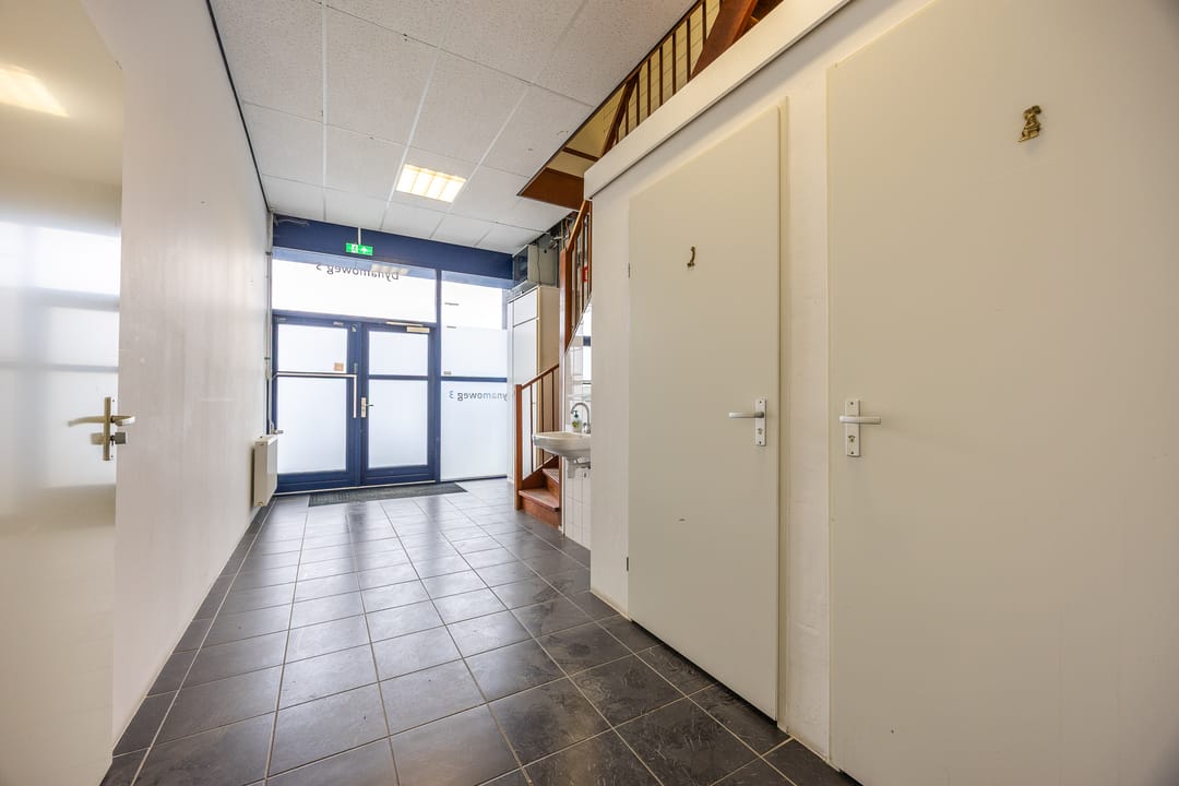 Het betreft hier een zeer royale multifunctionele bedrijfsruimte met kantoorruimte op de 1e etage en een drietal parkeerplaatsen.