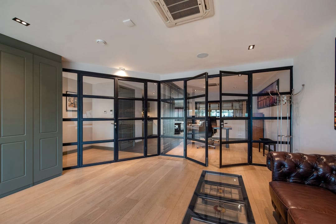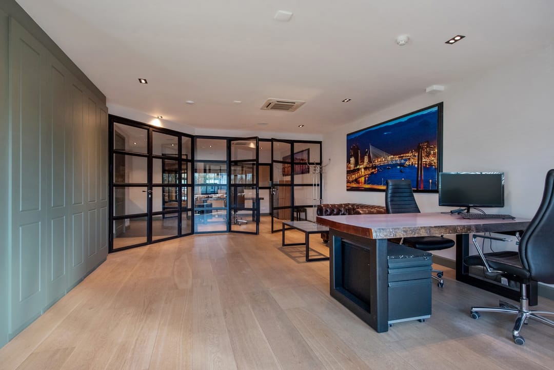 Drie stijlvolle vergaderruimtes/kantoren, voorzien van houten vloeren en inbouwspots