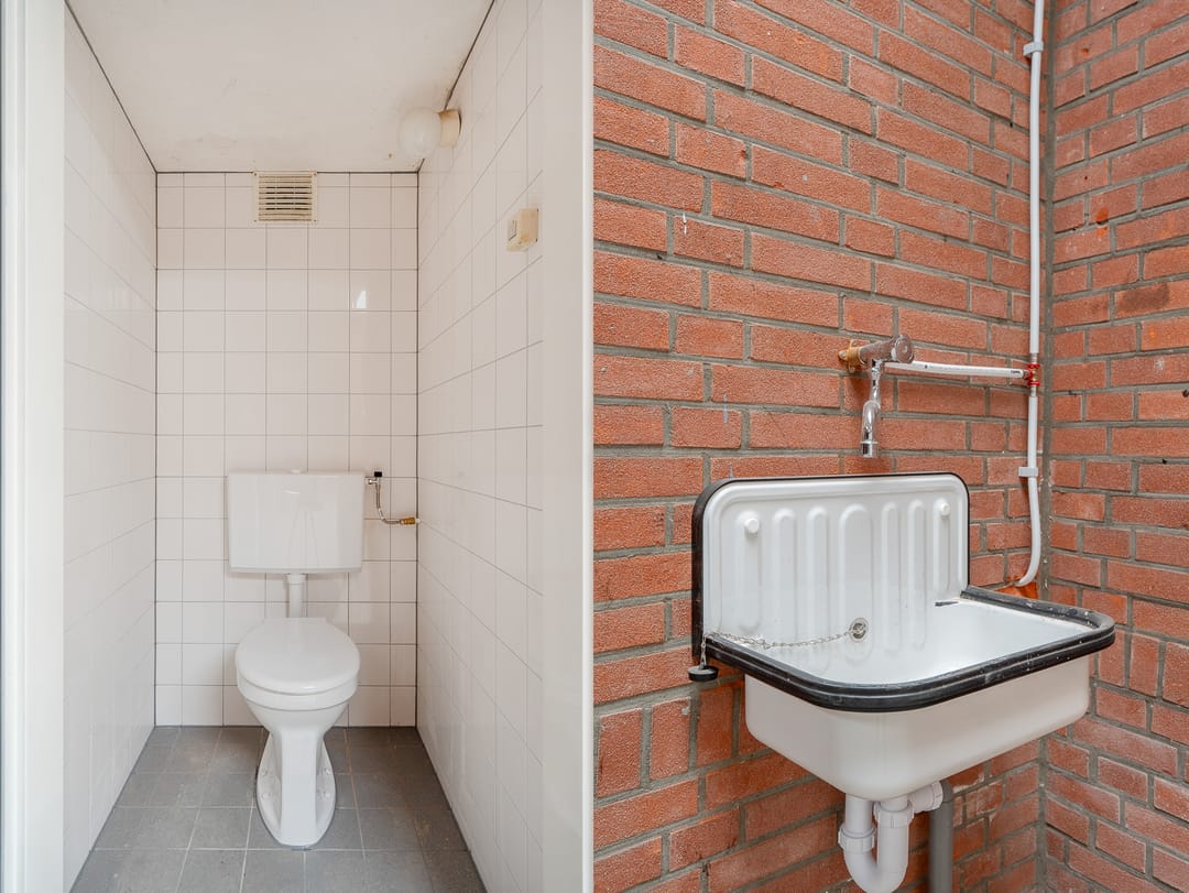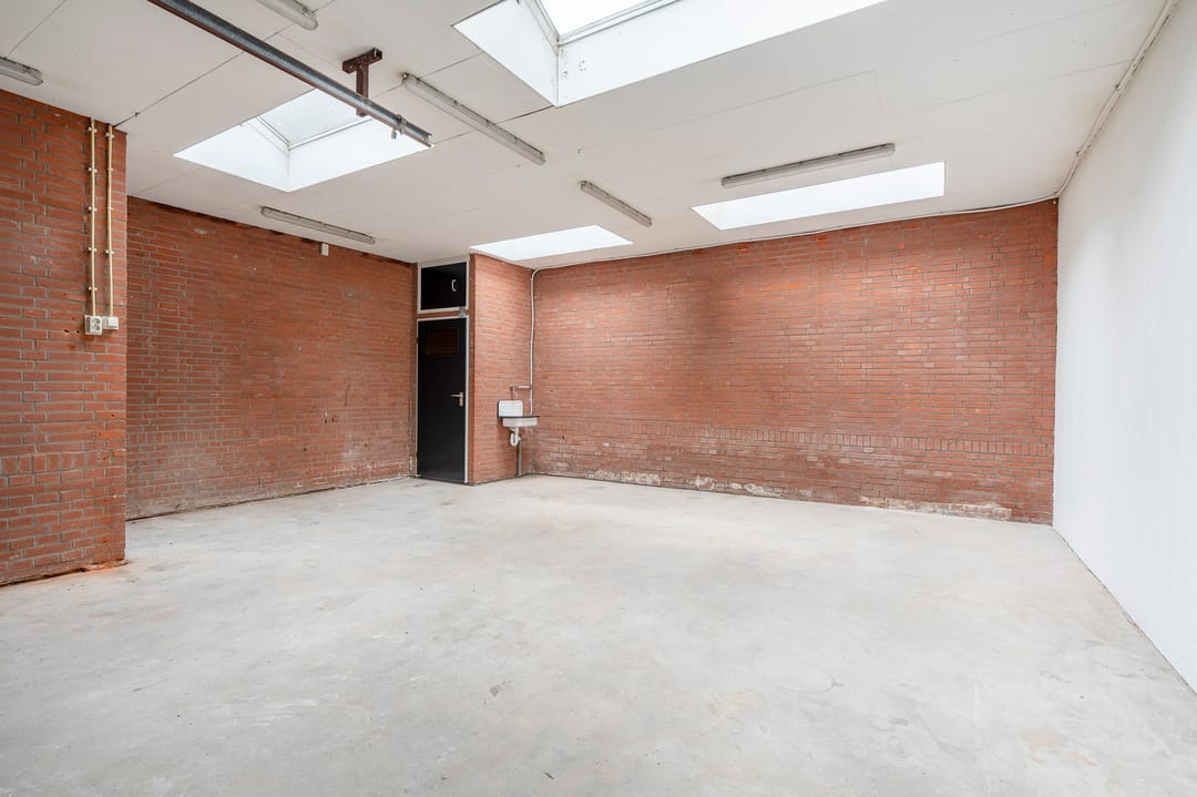 Eigen entree via overheaddeur, gunstige lichtinval dankzij 4 grote daklichten, meterkast en apart toilet. Overdekte plaats met deur naar de straat en aparte berging eveneens voorzien van dakramen.