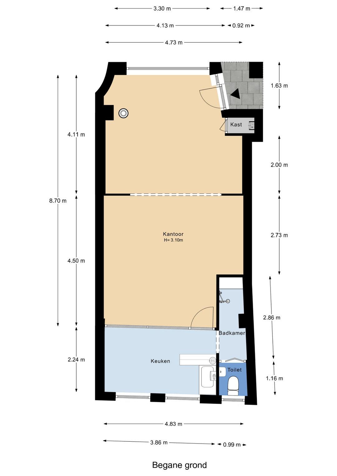 Begane grond: circa 63 m² BVO / circa 51 m² NVO