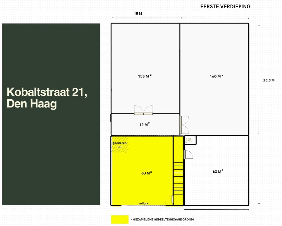 Op een uitstekend gelegen bedrijventerrein in Den Haag bieden wij diverse bedrijfs- en kantoorruimtes te huur aan, gesitueerd op de eerste etage van een functioneel en goed ontsloten bedrijfspand. Het pand beschikt over een ruime laad- en losruimte, gezamenlijke entree, overheaddeur, lift en trap, wat het pand bijzonder geschikt maakt voor logistiek, opslag en lichte bedrijfsactiviteiten.
