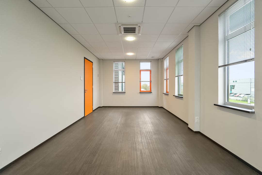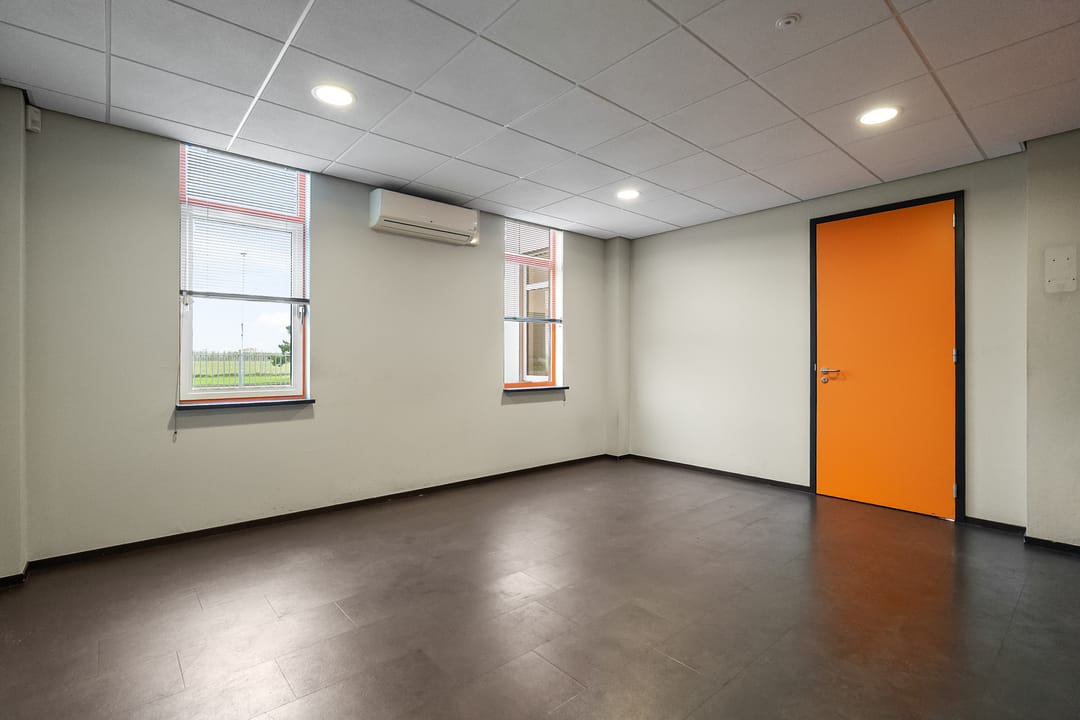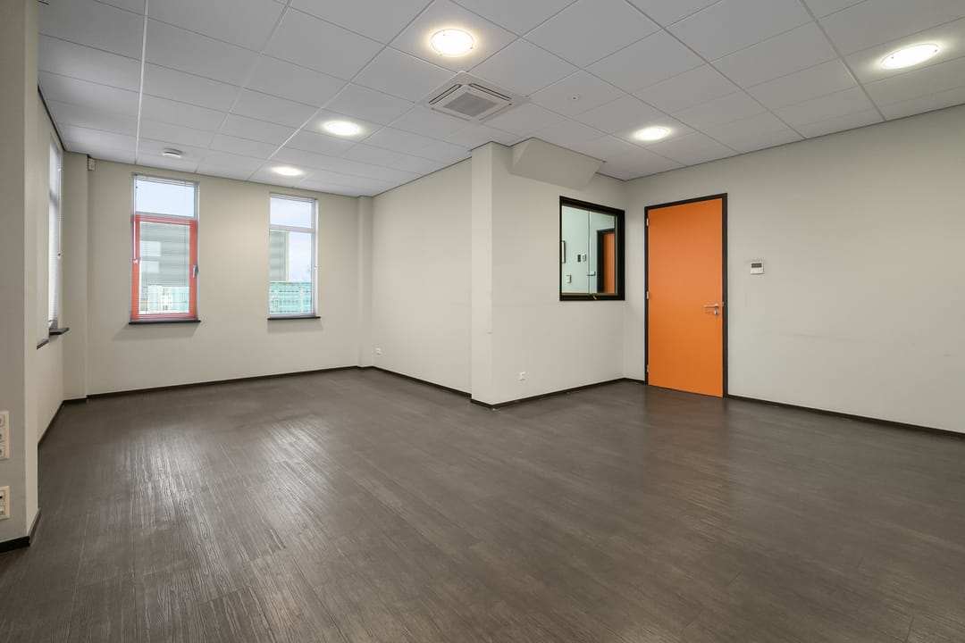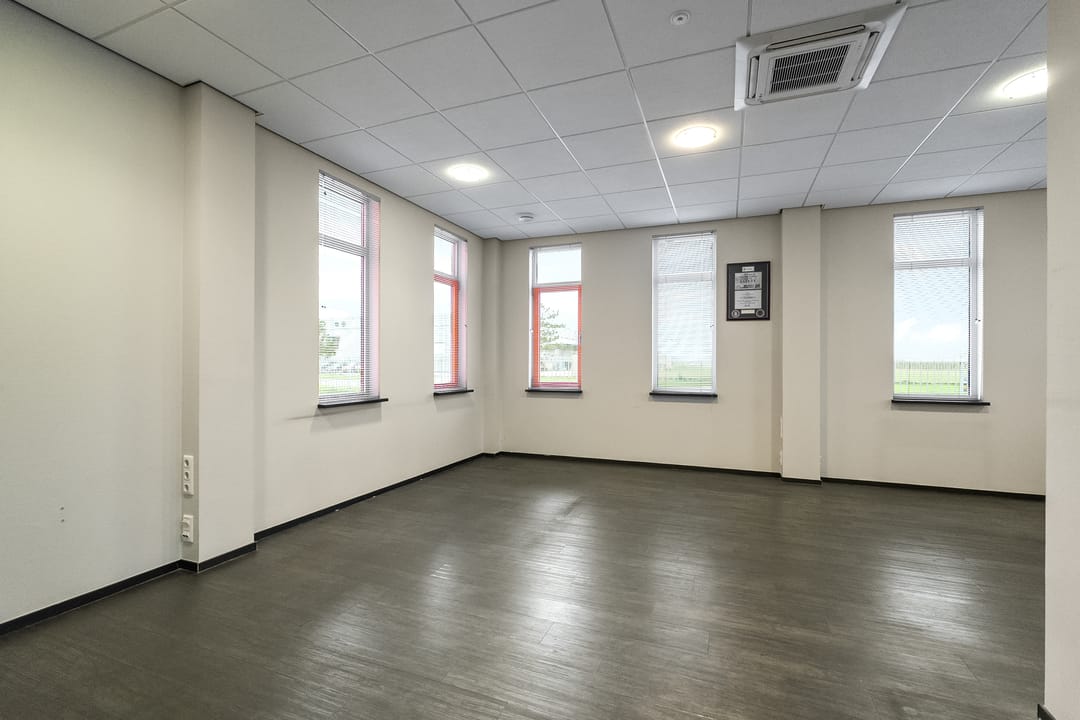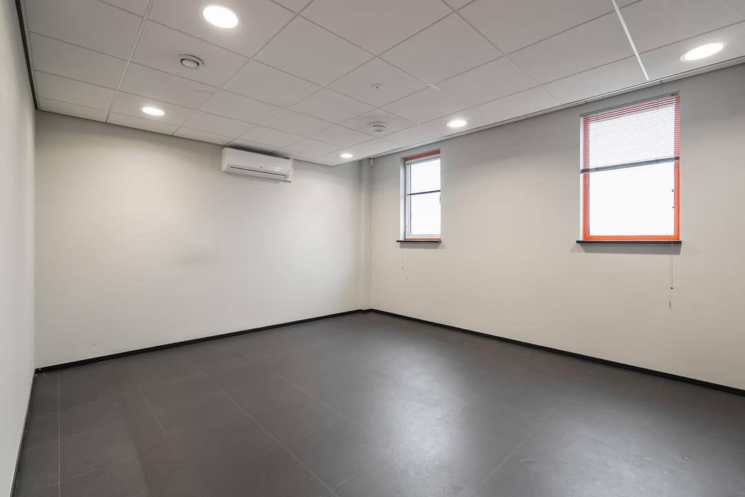 Kantoorruimte: moderne kantoorruimte v.v. airco units, systeemplafonds met verlichtingsarmaturen, pvc vloeren.