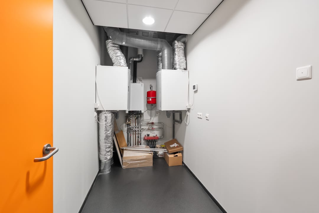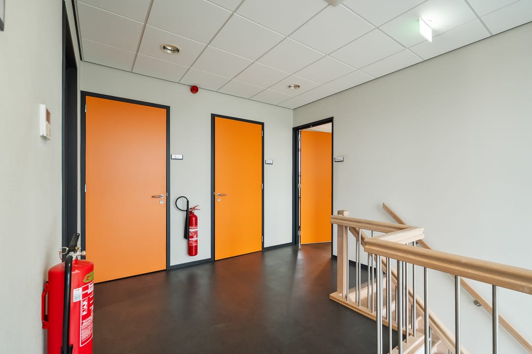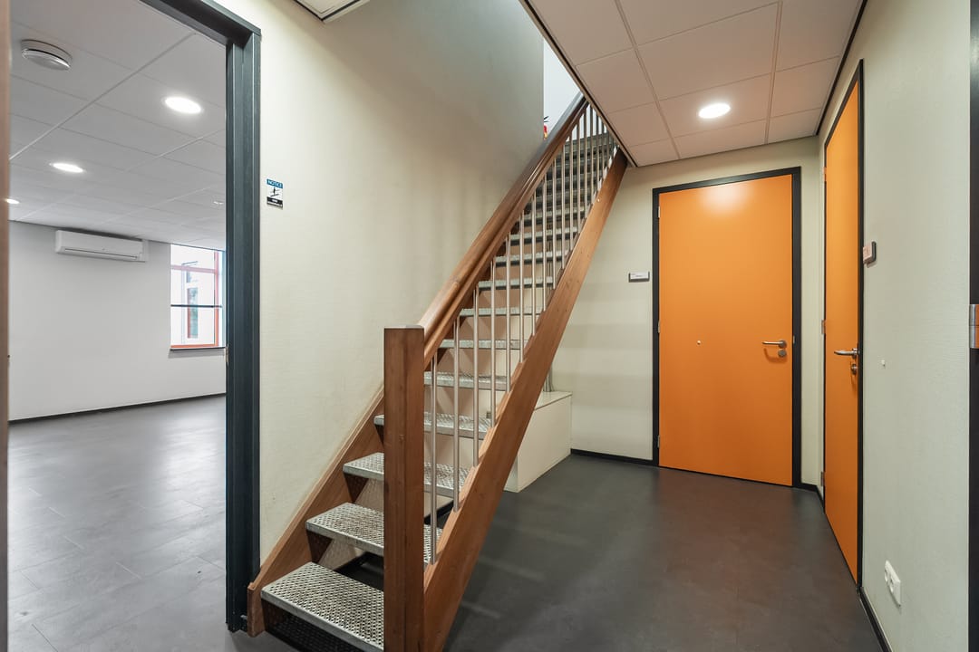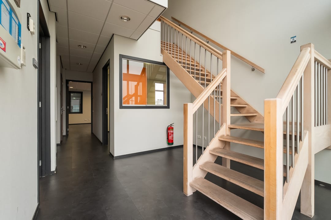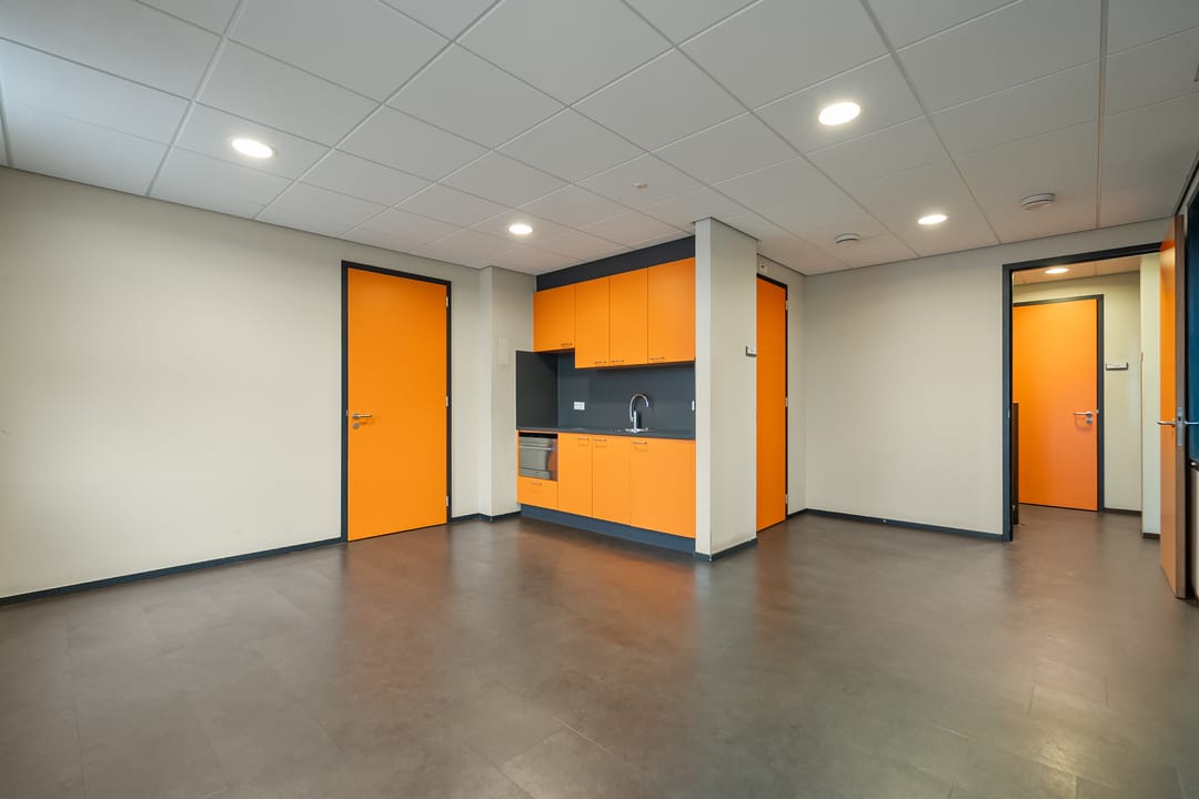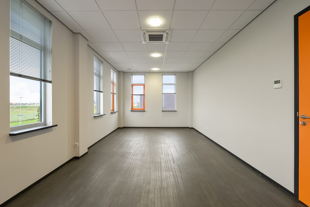 Kantoorruimte: moderne kantoorruimte v.v. airco units, systeemplafonds met verlichtingsarmaturen, pvc vloeren.