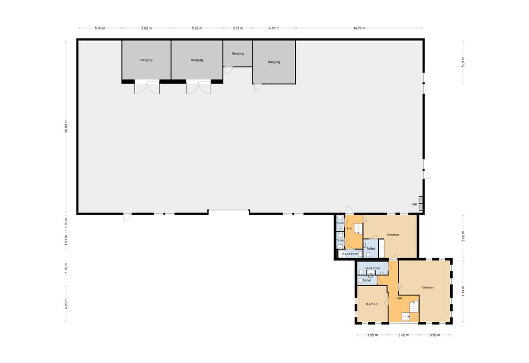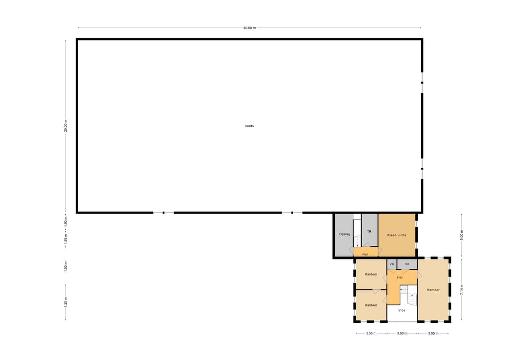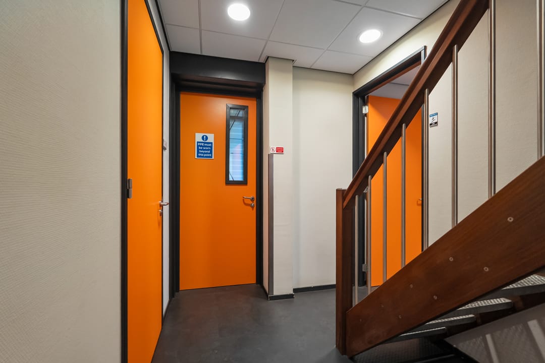 Kantinefaciliteit werkplaatskantoor, technische ruimte, kantoren, toiletgroepen, receptie, douchegelegenheid.