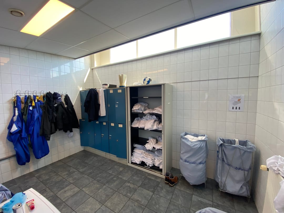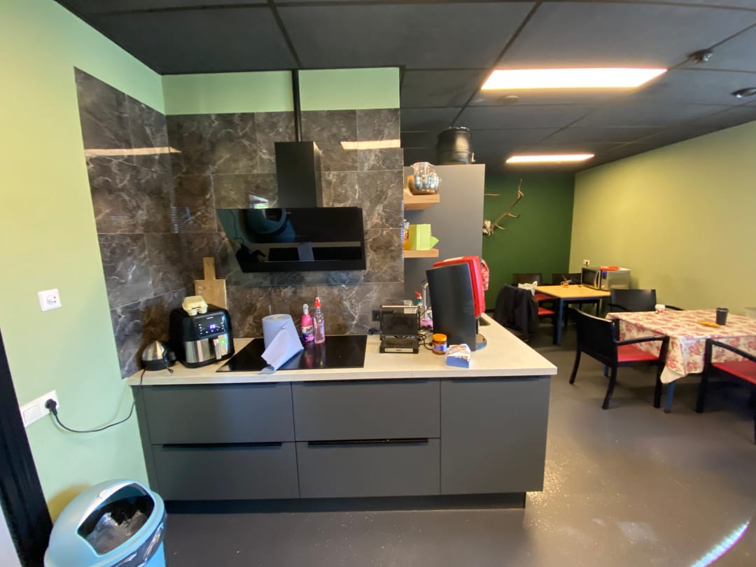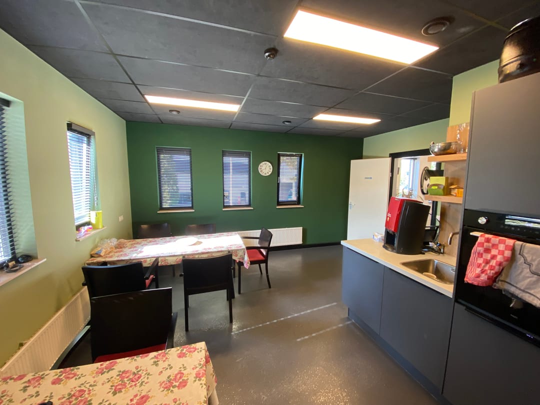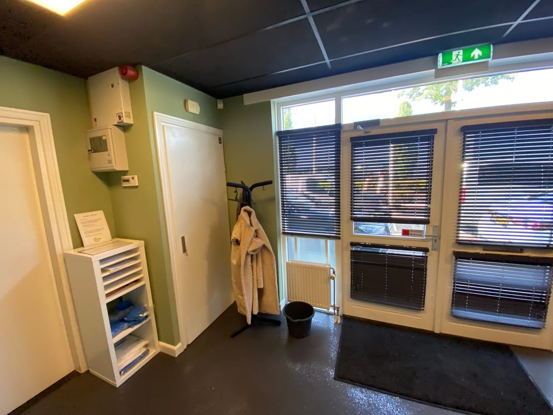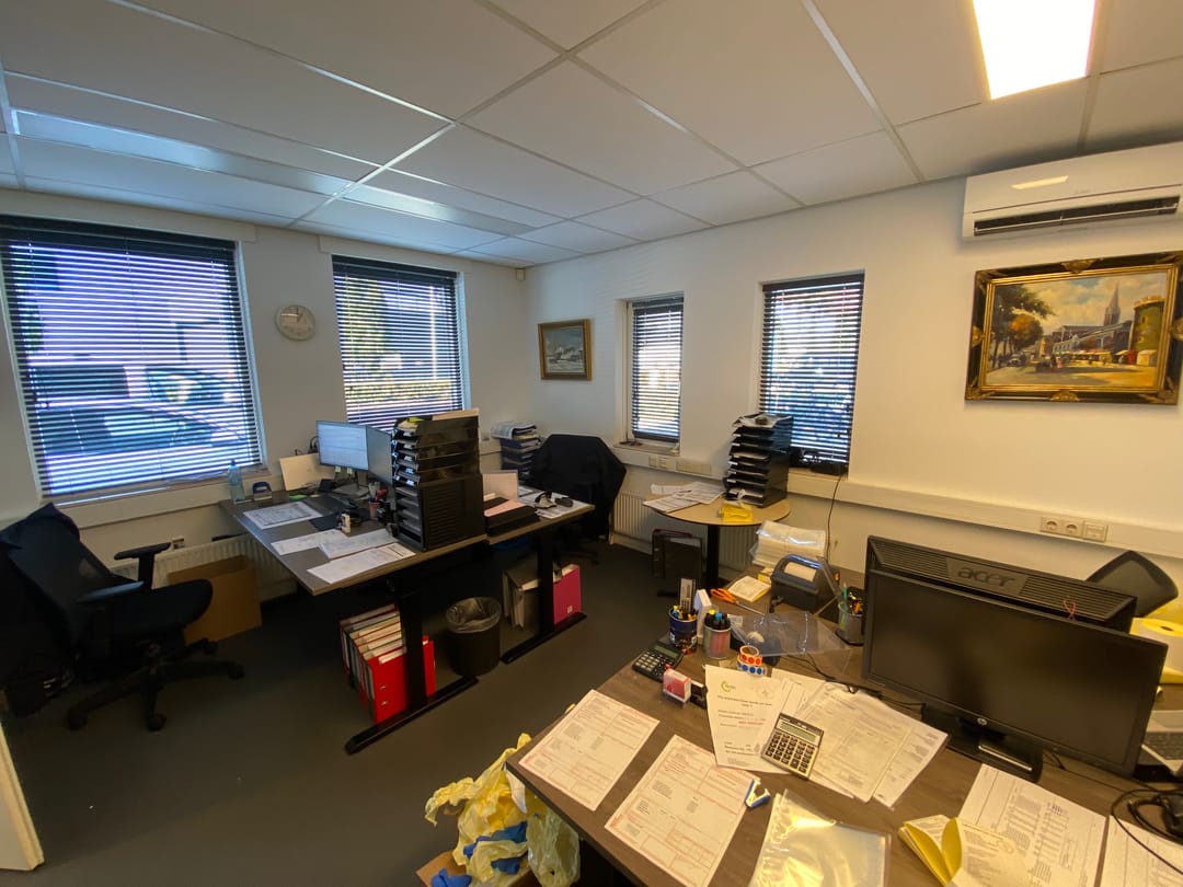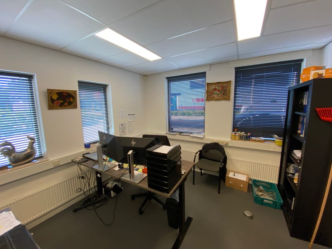 Ca. 214 m² entree, kantoren, kantine, was-/kleedruimtes in 2 lagen.
