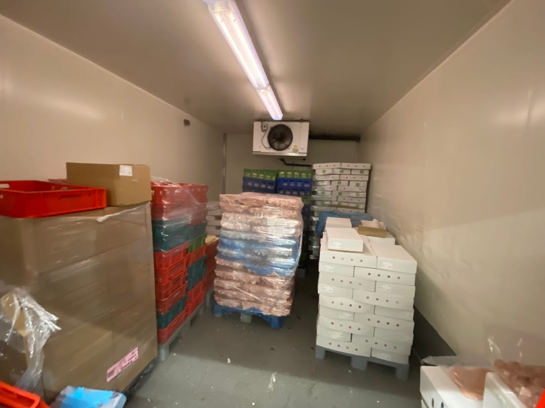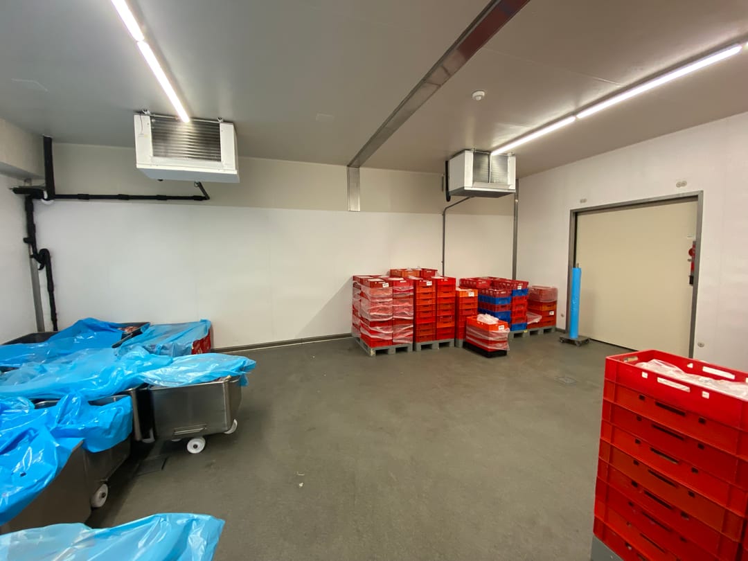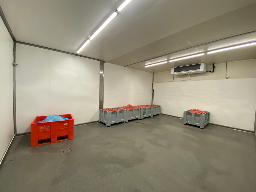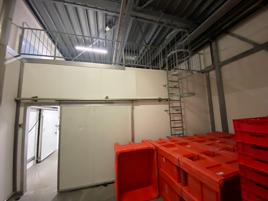 Ca. 975 m² koelcellen, vriescellen en productieruimtes.