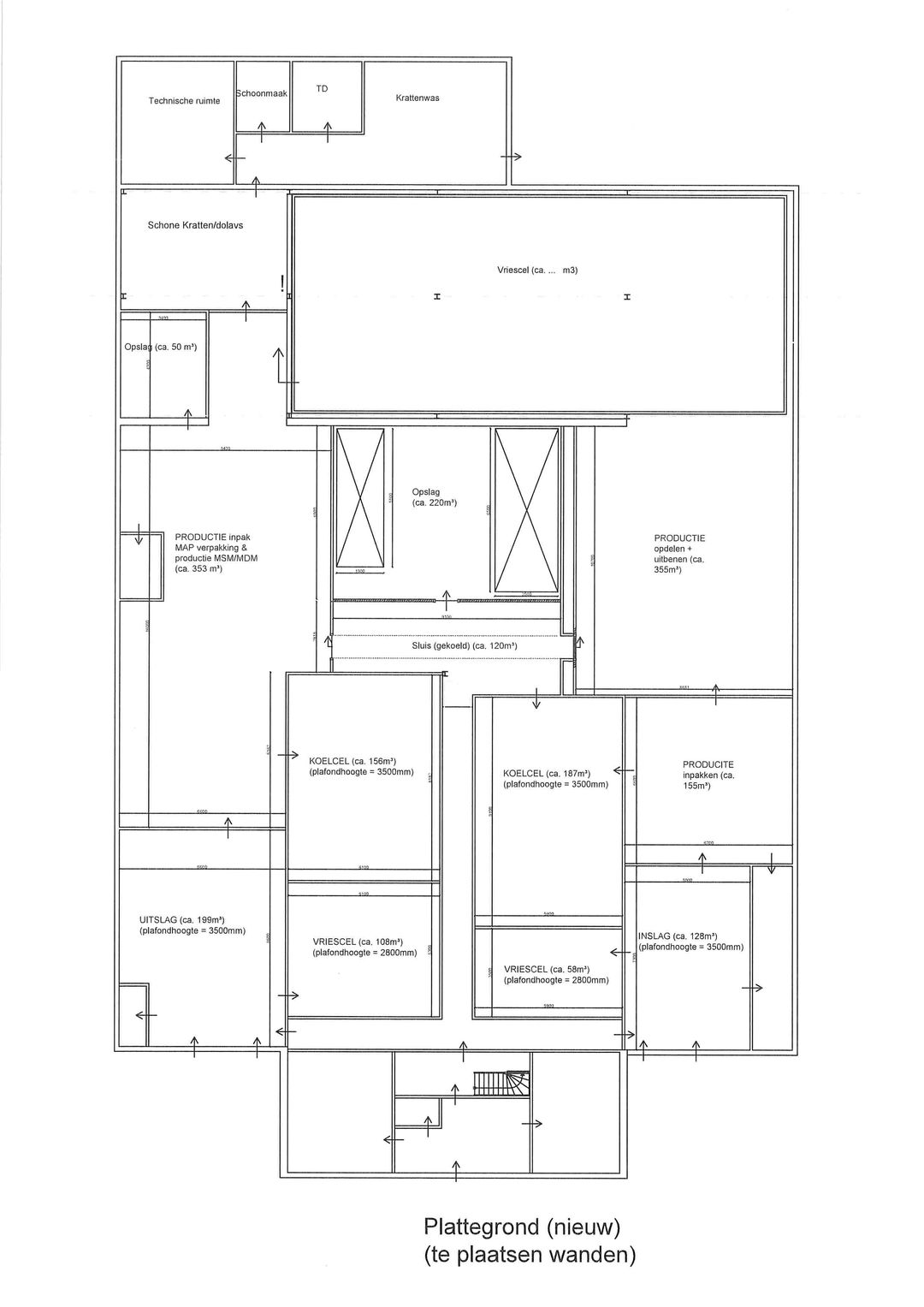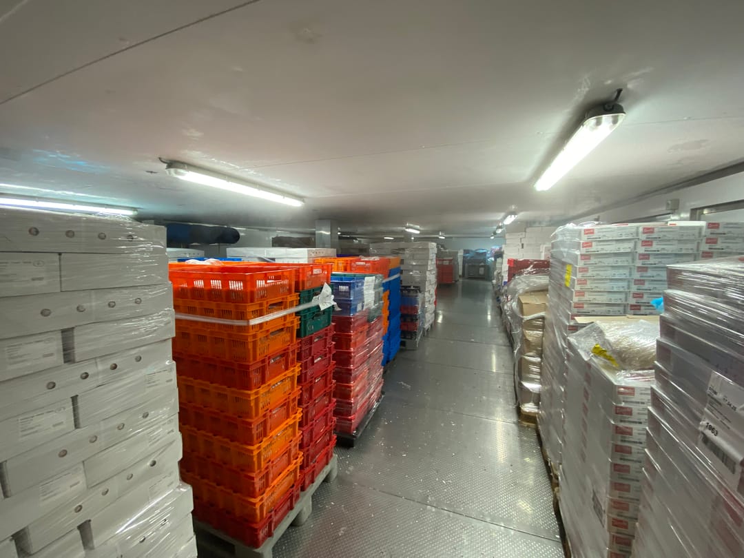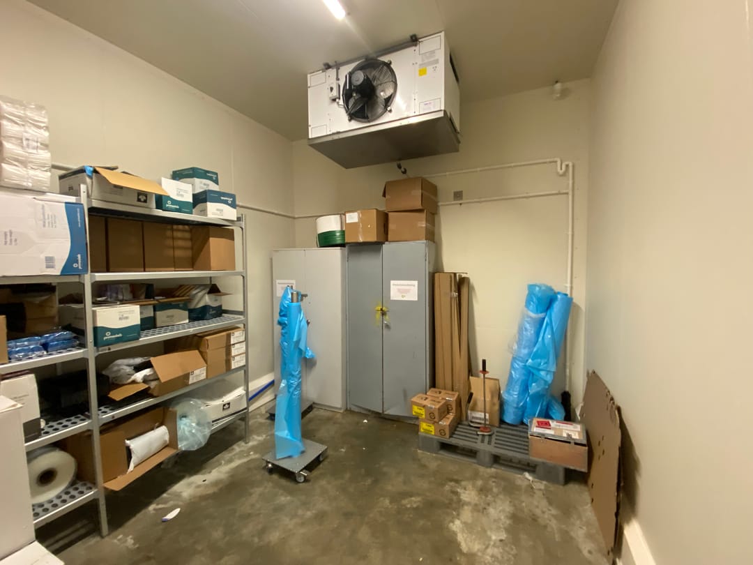 Ca. 975 m² koelcellen, vriescellen en productieruimtes.