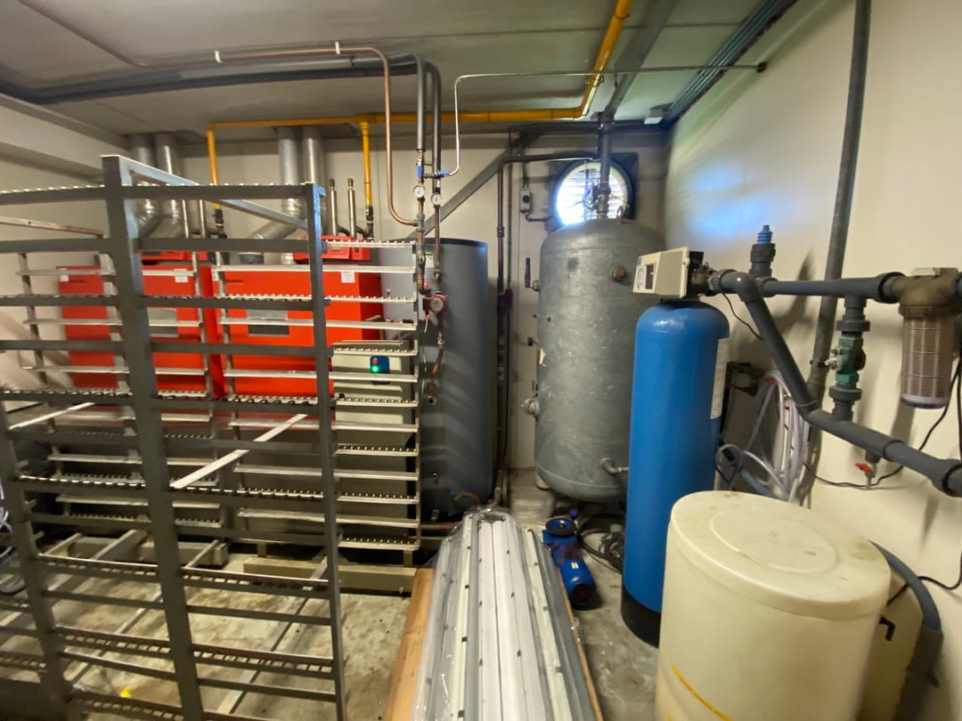 - vloergoten met vetafscheider en putten;