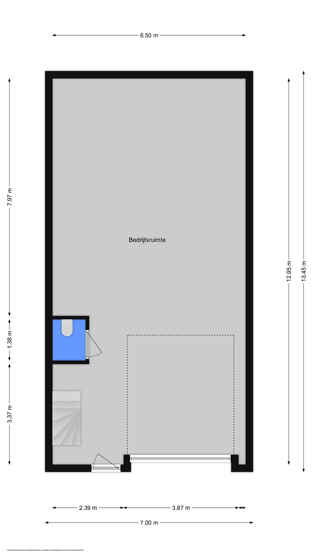 Aan de voorzijde bevindt zich de entree met trapopgang naar de verdieping. Op de verdieping een open ruimte, welke nog naar eigen wens is in te delen.